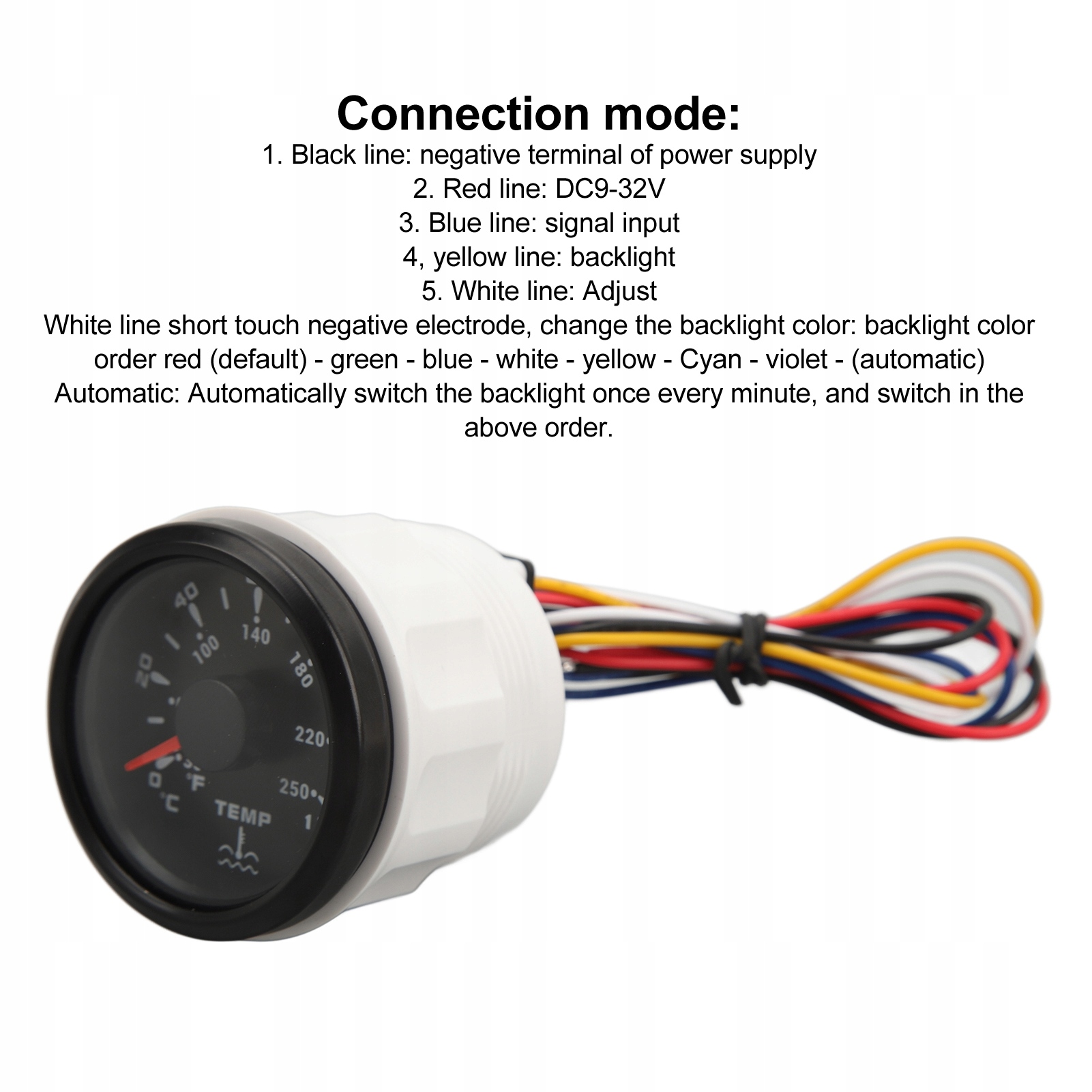 1. Универсальный: с монтажным размером 52 мм/2 дюйма, измеритель температуры воды 9-32 В для автодома, яхты, рыбацкой лодки, корабля, с красочной подсветкой, отличная модификация.