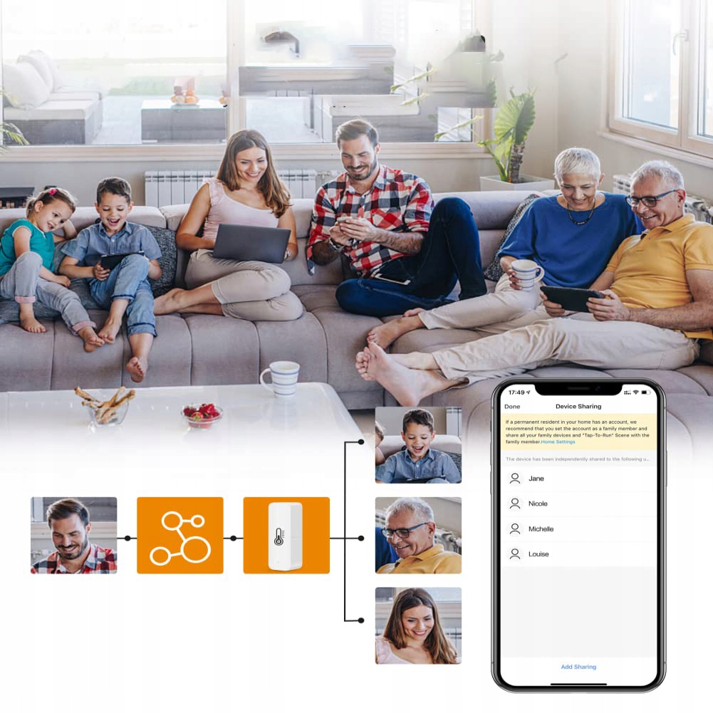 3. ПРИЛОЖЕНИЯ УДАЛЕННОГО МОНИТОРИНГА: Обнаружение изменений температуры и влажности в реальном времени и отчеты в реальном времени на вашем смартфоне. Просматривайте исторические записи в приложении, интеллектуально контролируйте температуру и работайте дома. Следите за температурой и активностью дома и живите разумно в любое время и в любом месте.