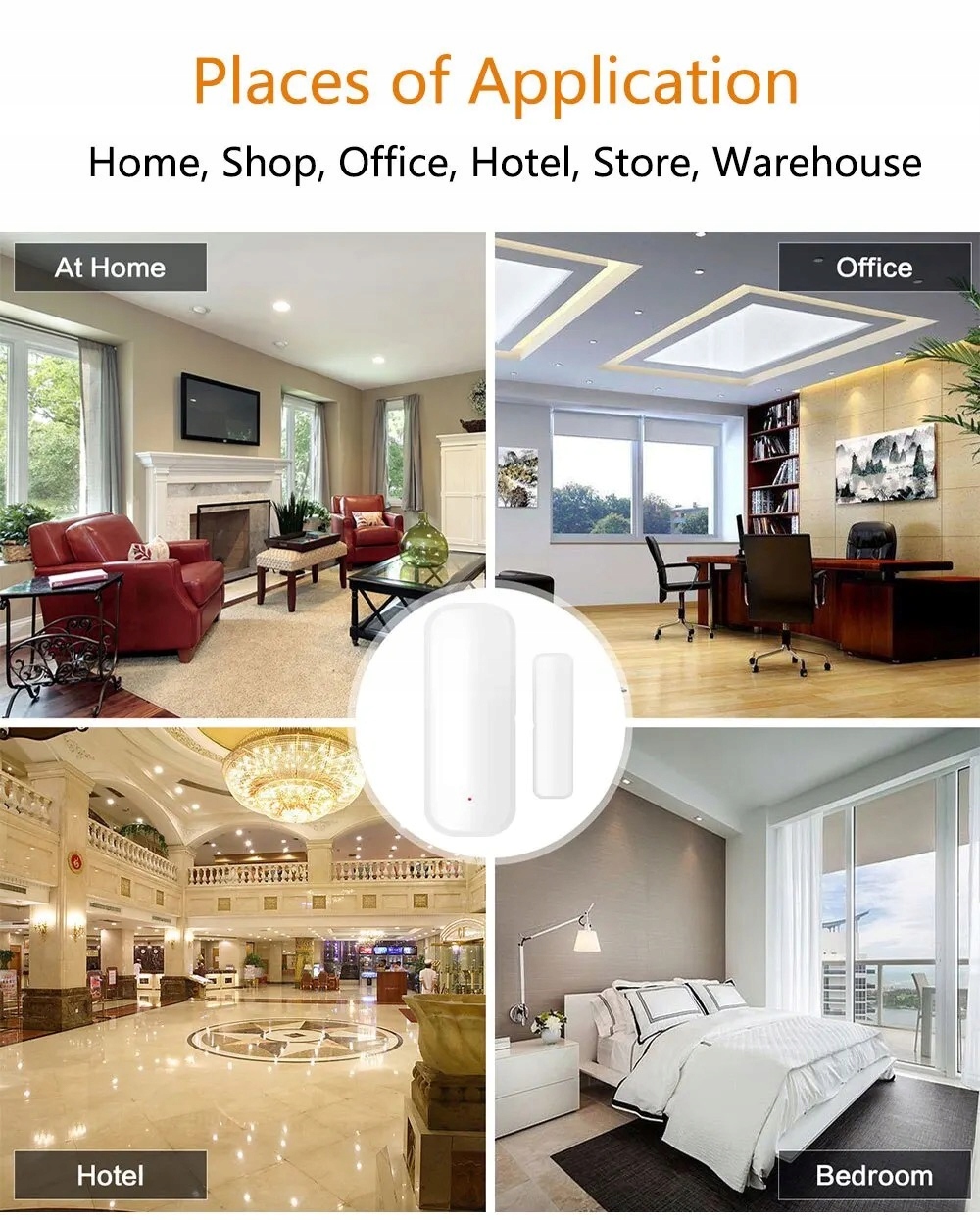 - Беспроводное устройство немедленно отправит уведомление на ваш телефон после открытия или закрытия двери или окна, работает с приложением Tuya Smart по Wi-Fi-связи.