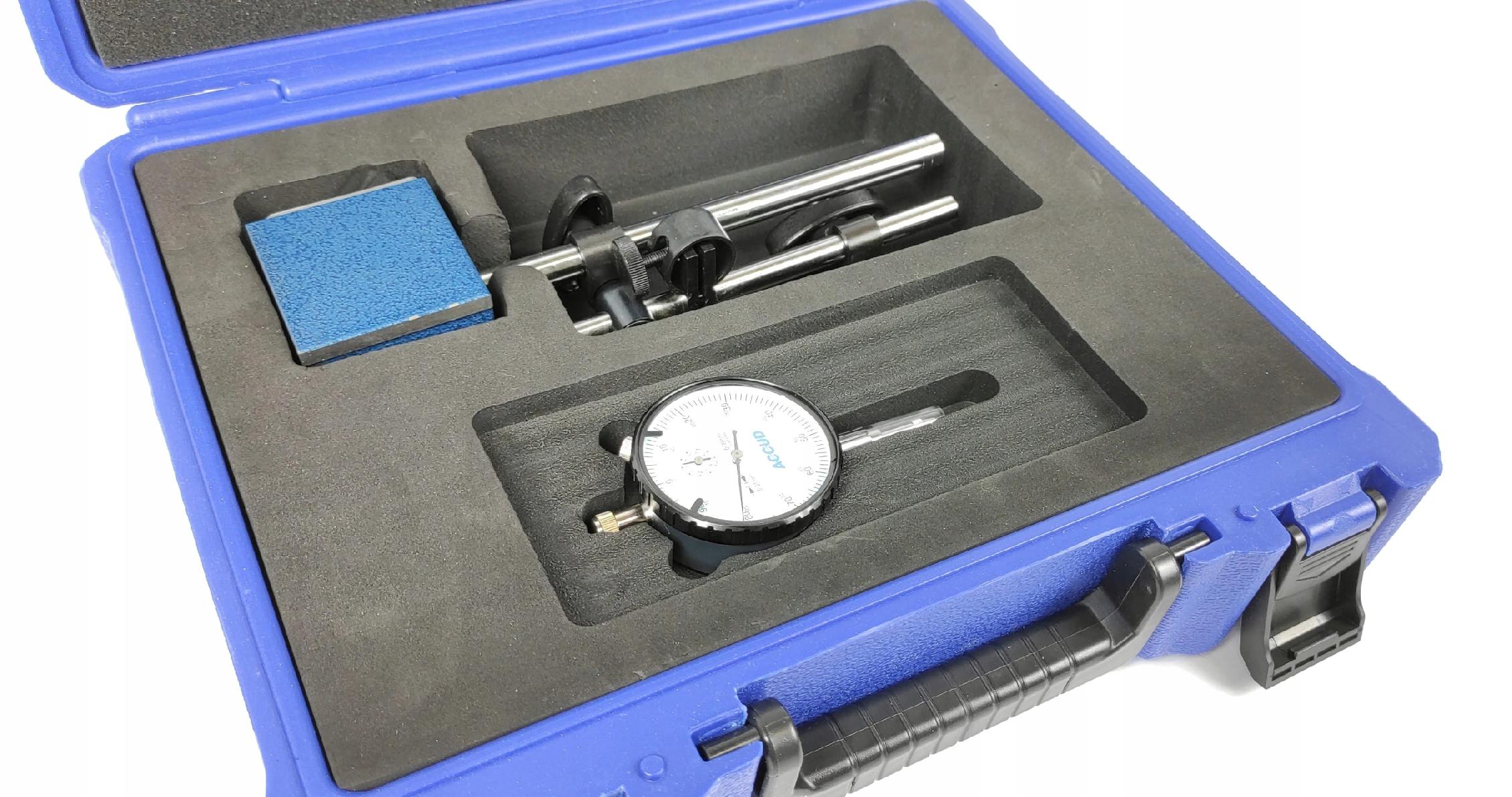 Измеренный набор, состоящий из дюймового датчика тактовой частоты с диапазоном измерений 0-1 и 0,001 дюйма, и магнитного основания с магнитной мощностью 60 кг. Целое доставляется в корпусе, сделанном из пластика
