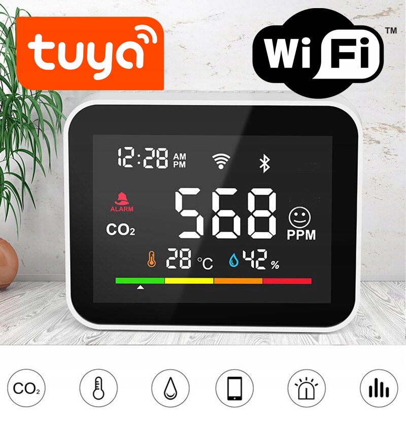 ДАТЧИК КОНЦЕНТРАЦИИ УГЛЕКИСДА CO2 + ТЕМПЕРАТУРА + ВЛАЖНОСТЬ с WIFI УМНОЙ ДОМОЙ СВЯЗЬЮ - ПРИЛОЖЕНИЕ TUYA