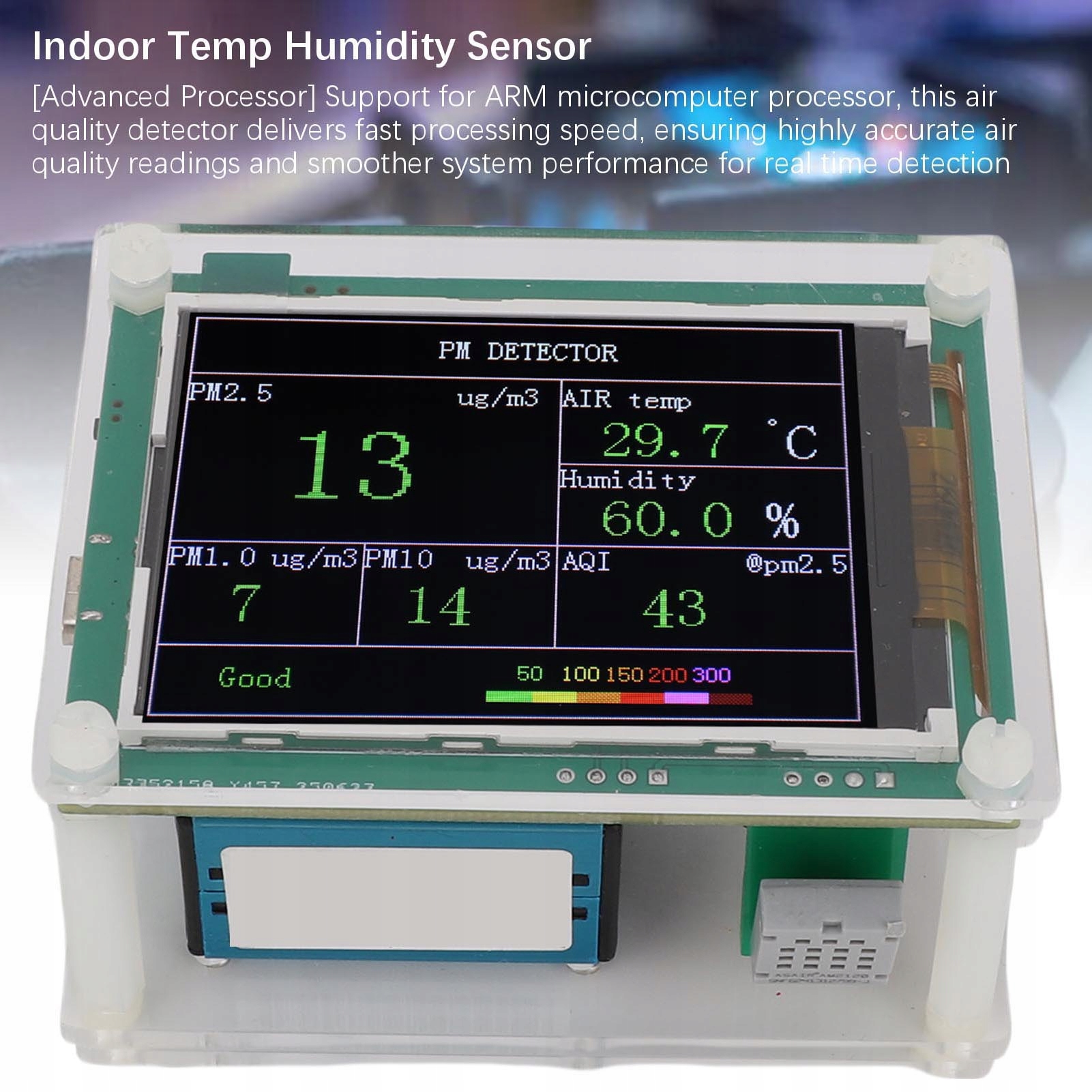 3. PM2.5, температура, влажность и частичные материалы, что делает его подходящим для оценки воздуха во внутренних условиях, таких как дом, офис или транспортное средство