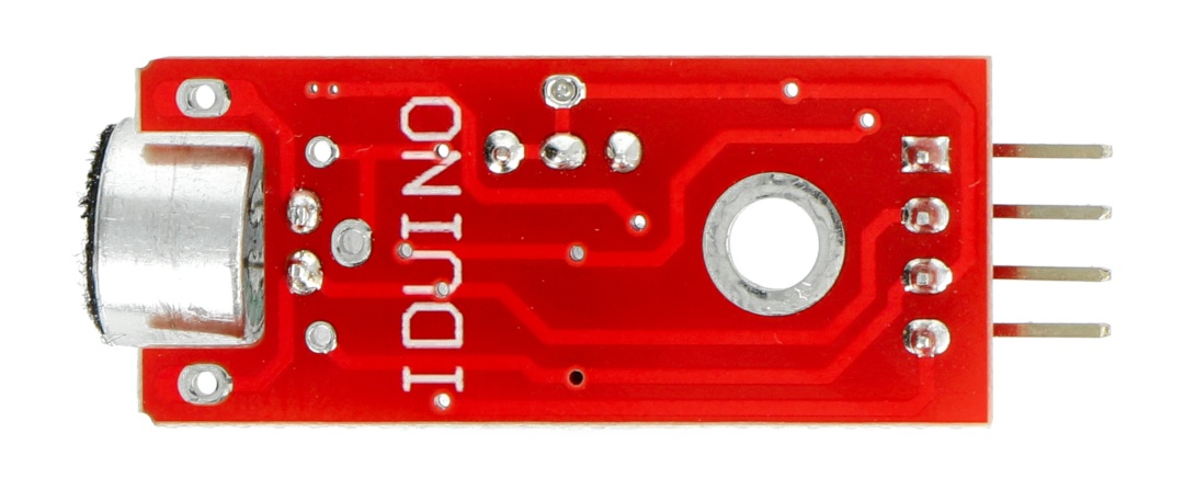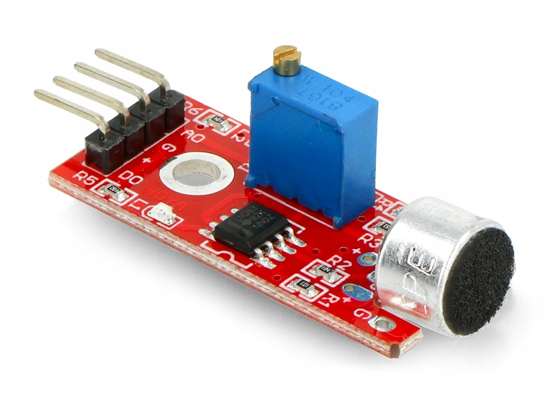 Детектор звука с небольшим микрофоном, питаемым напряжением в диапазоне от 3,3 до 5 В. Модуль удобен в использовании, имеет два выхода: аналоговый - позволяющий измерять интенсивность сигнала и цифровой - изменение состояния после превышения установить уровень.