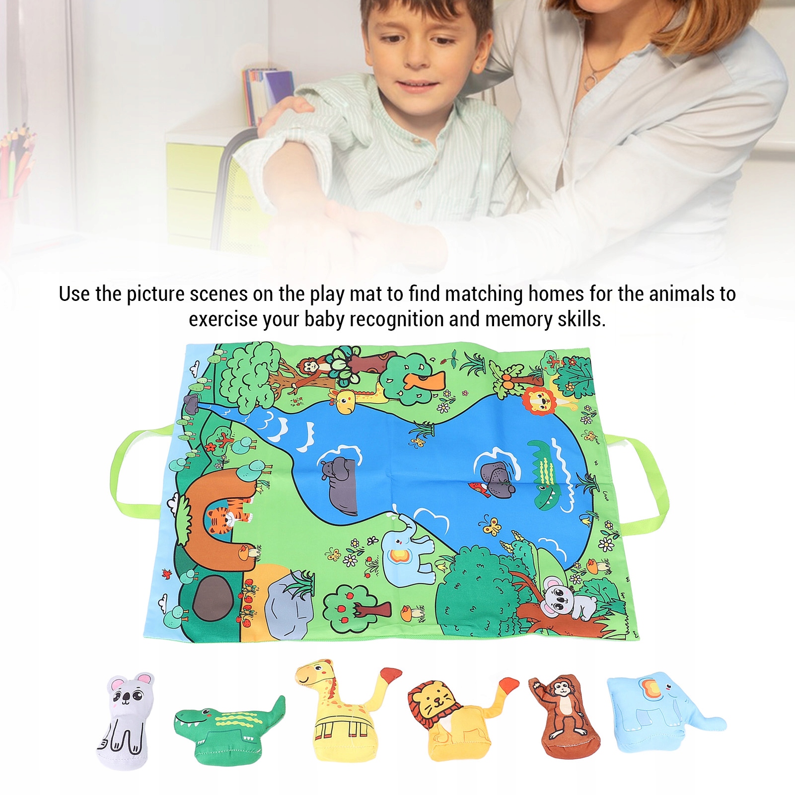1. Навыки распознавания и памяти: через иллюстрированные сцены для игрового коврика, дети могут развить свои навыки дискриминации и памяти, сопоставляя мелких животных с их домами.