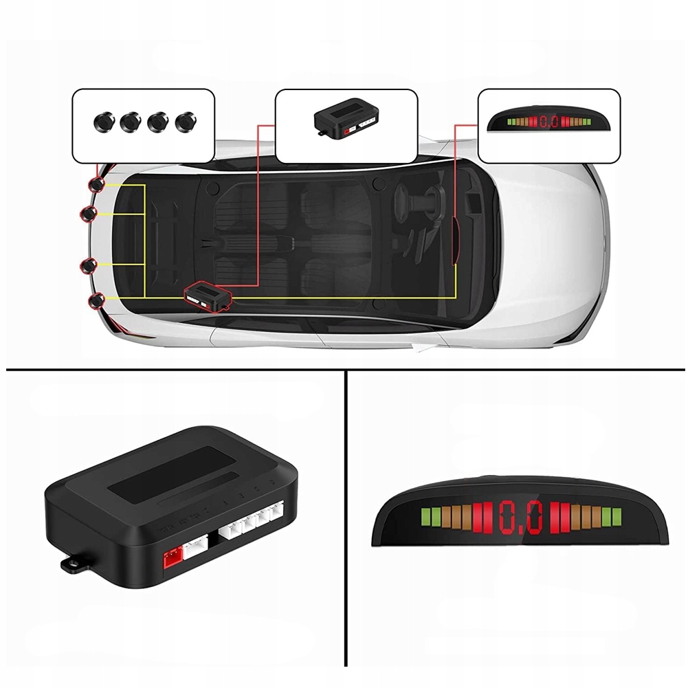 Данный комплект состоит из системы помощи при парковке с 4 ультразвуковыми датчиками и динамиком. После простой установки система работает полностью автоматически. Благодаря небольшим датчикам можно отслеживать приближающийся объект. Предусмотрены звуковые предупреждения для предотвращения повреждения автомобиля.