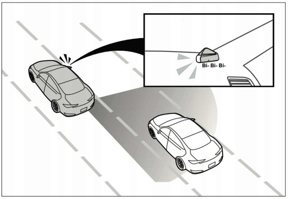 Когда водителя обгоняет другое транспортное средство, система предупреждает его желтым светом. Если водитель использует указатель поворота и в слепой зоне находится другое транспортное средство, система предупреждает его красным светом и звуковым сигналом. Ночной режим активируется при включении задних фонарей или фар, обеспечивая более комфортное предупреждение в темноте.