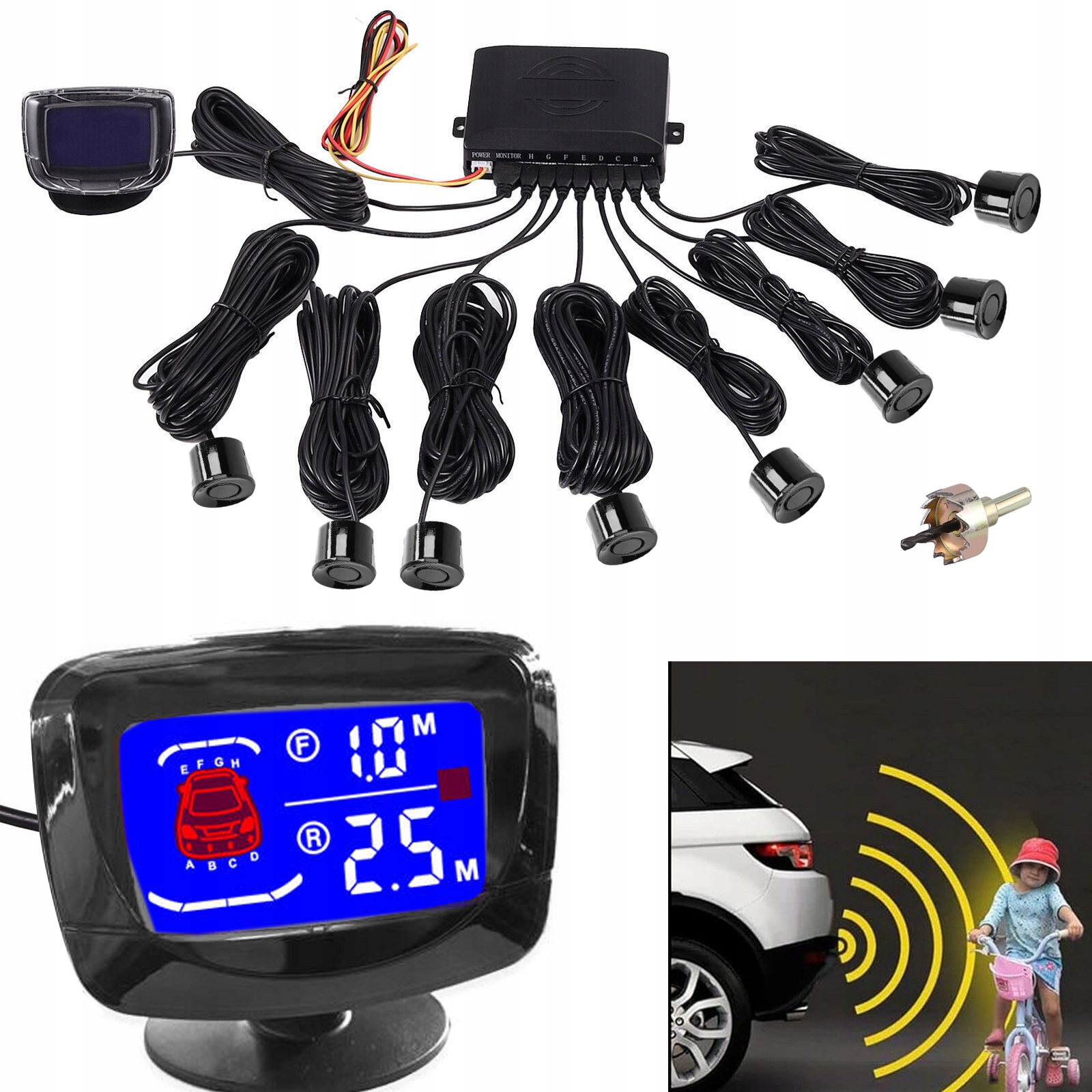 Датчики заднего хода — 8-кратный черный ЖК-дисплей вперед и назад