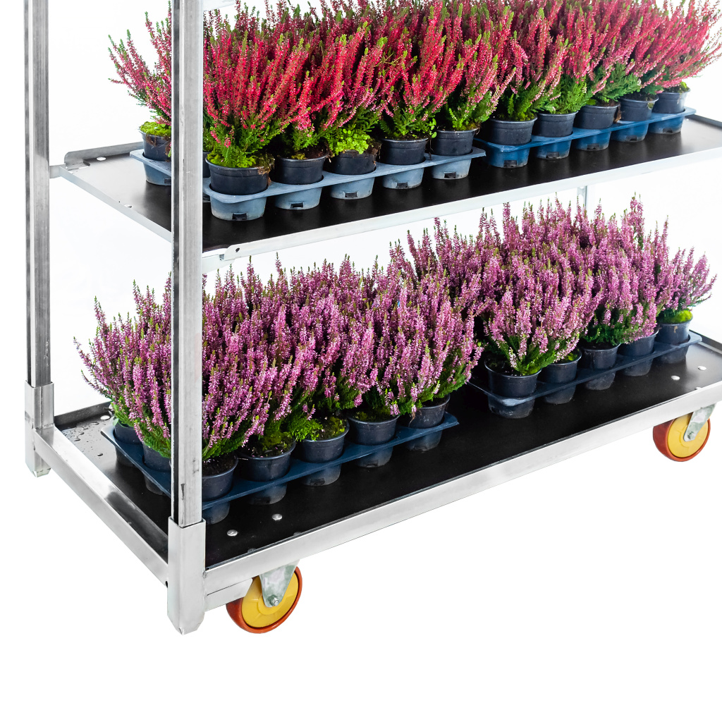 Датские тележки от Мега-М можно штабелировать после сезона, что сэкономит вам много места на складе. Мы можем отправить максимум 6 тележек для цветов на одном поддоне.