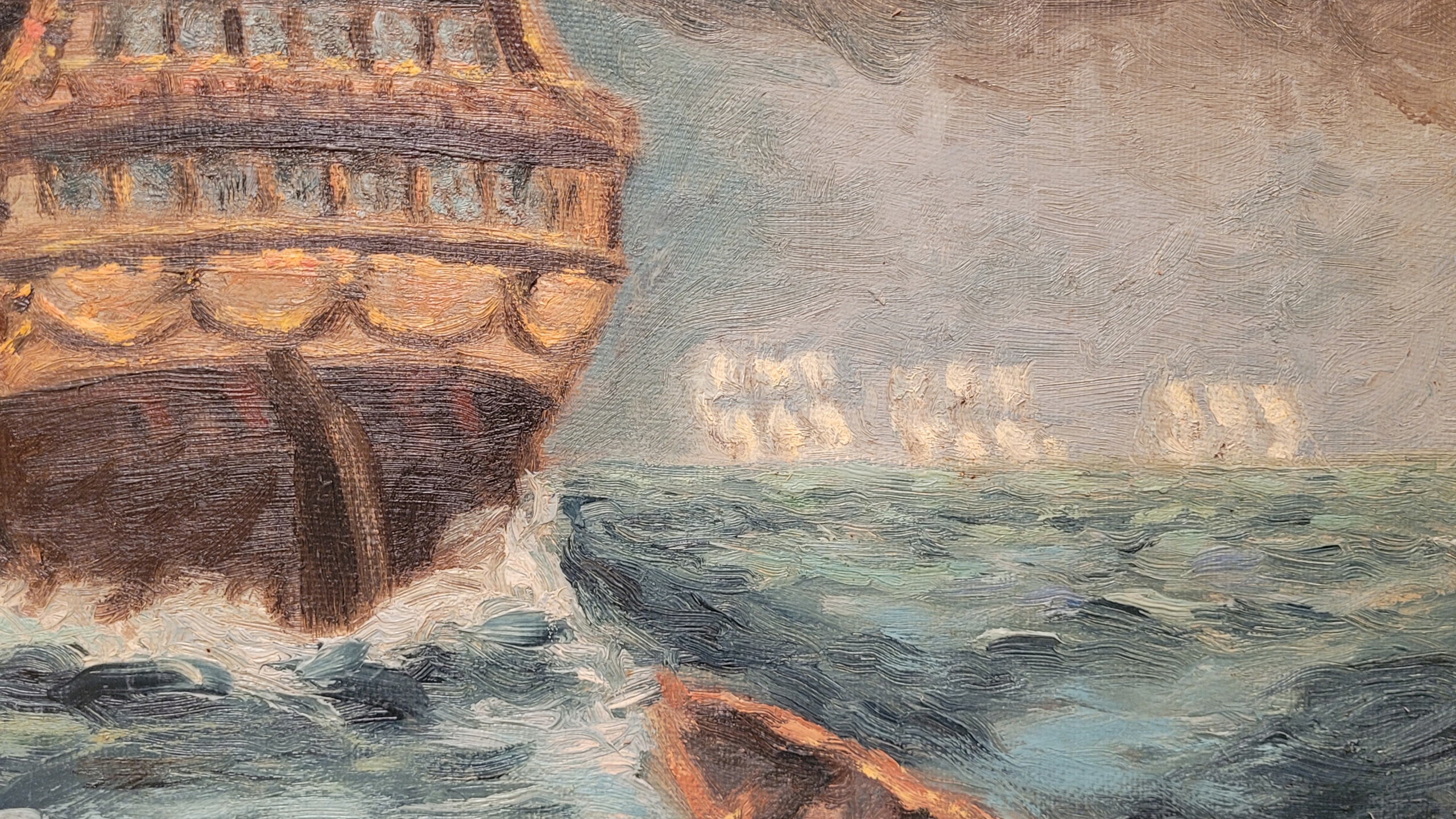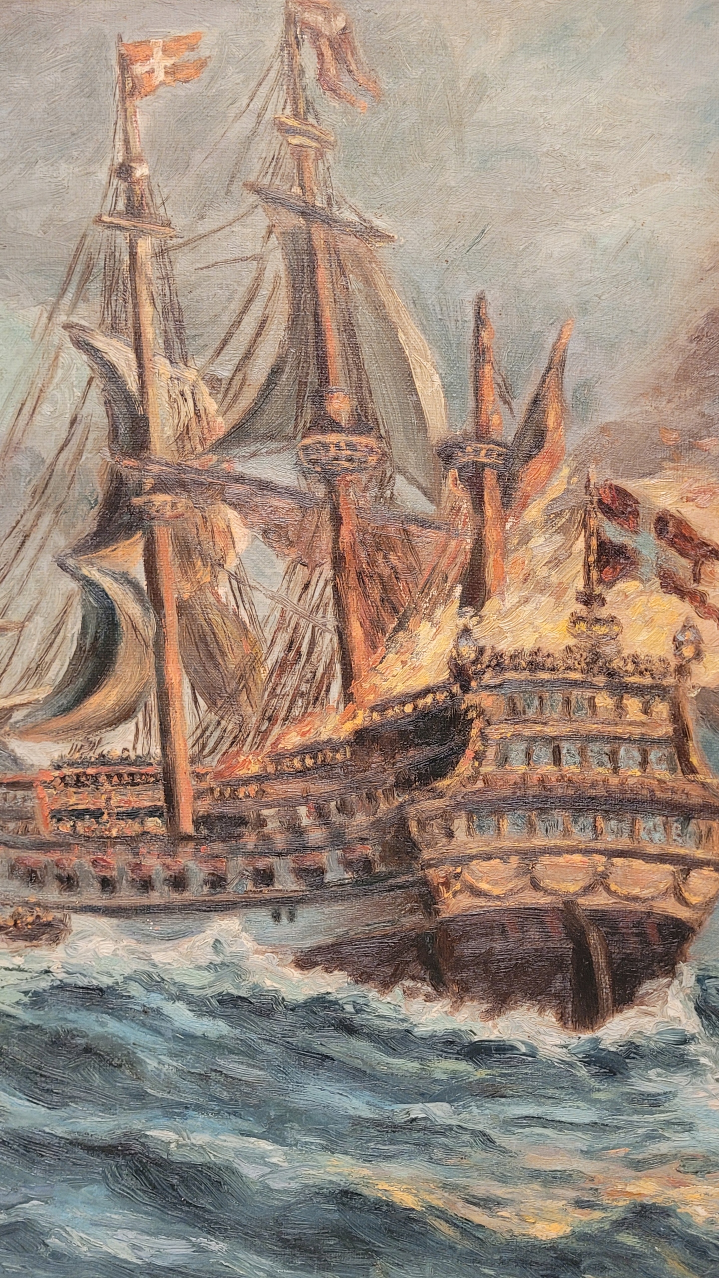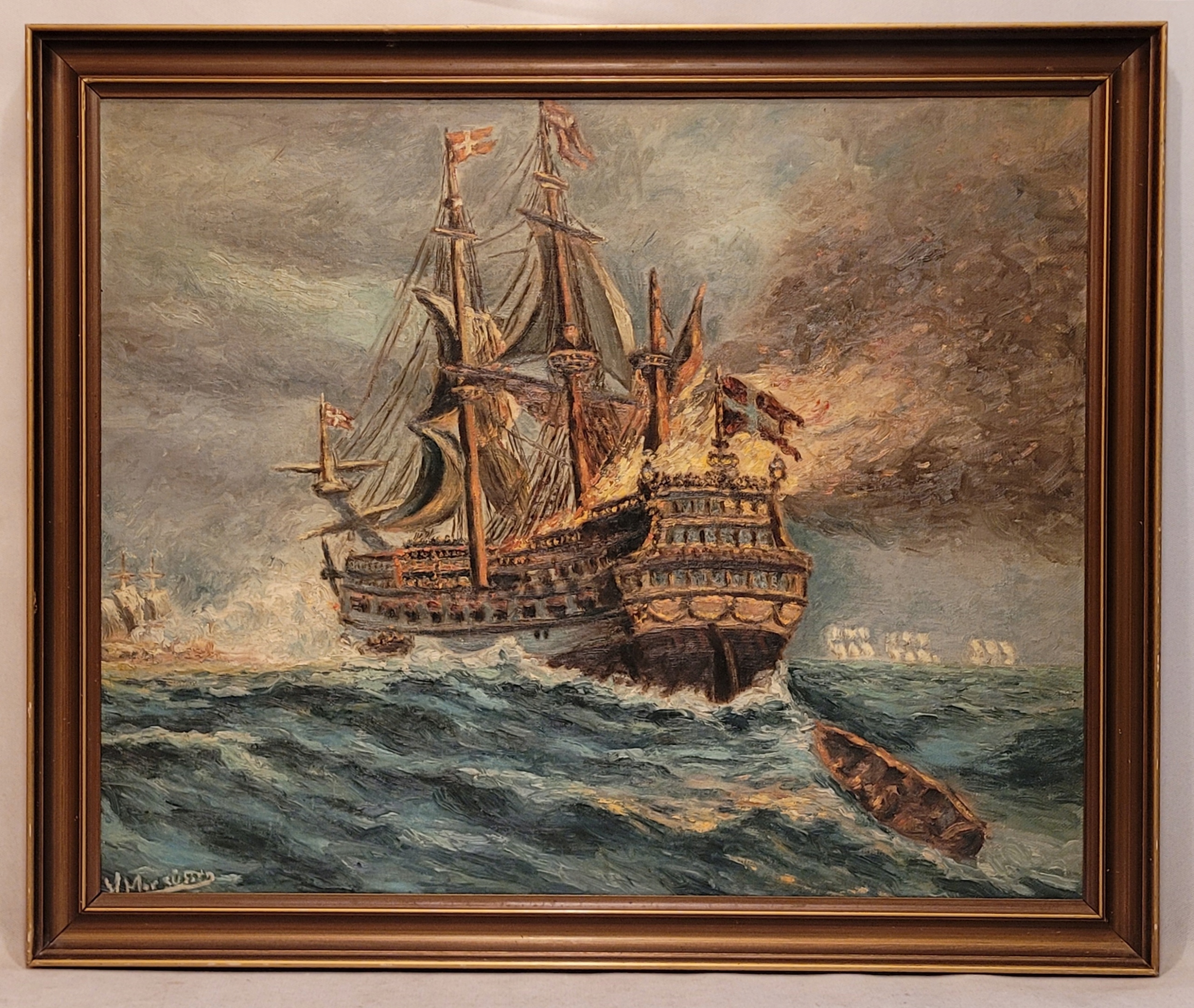 «Датский галеон», старая, подписанная нефтяная картина.