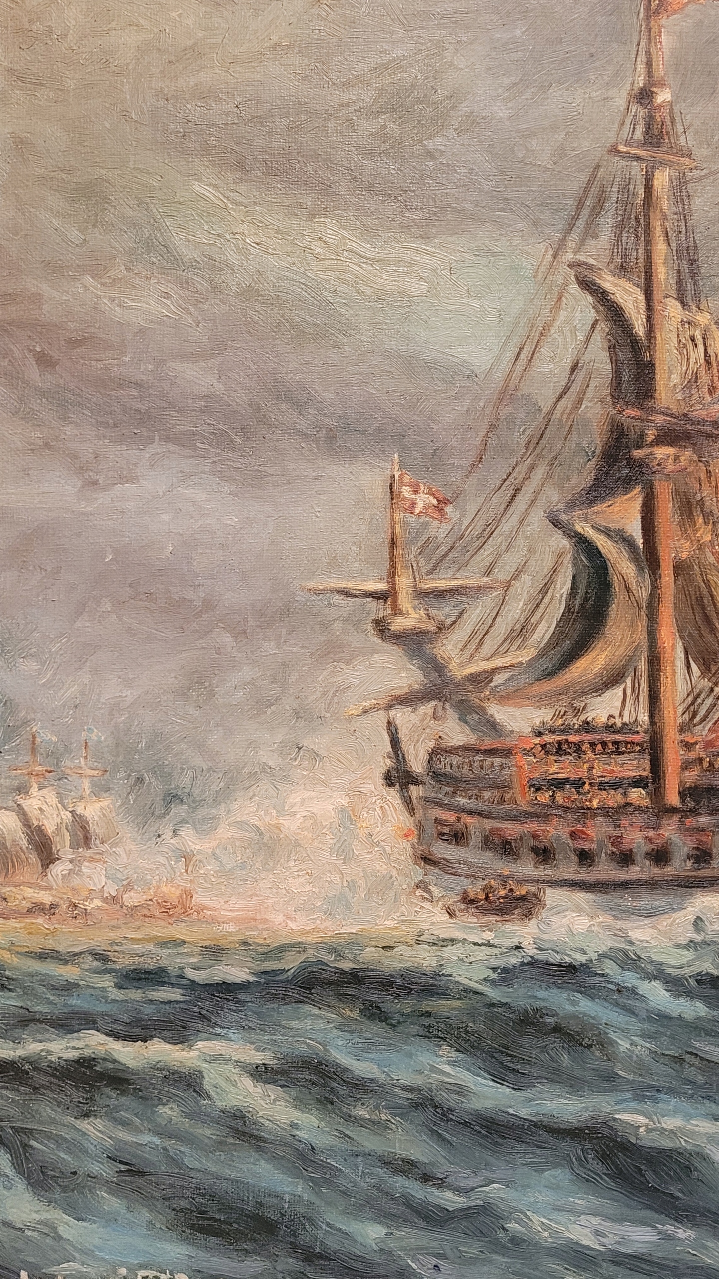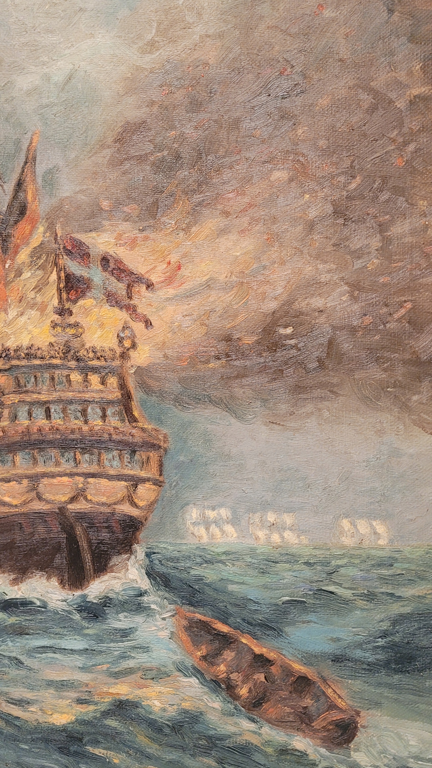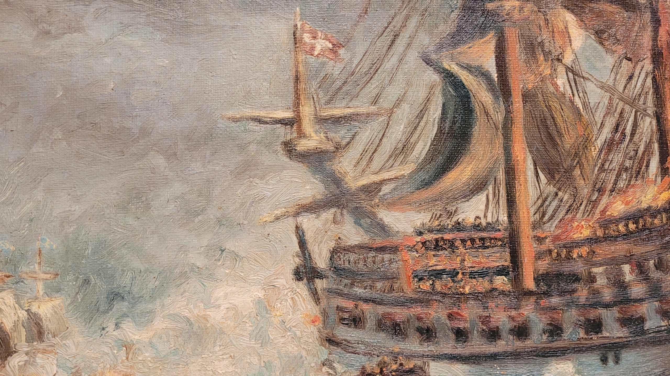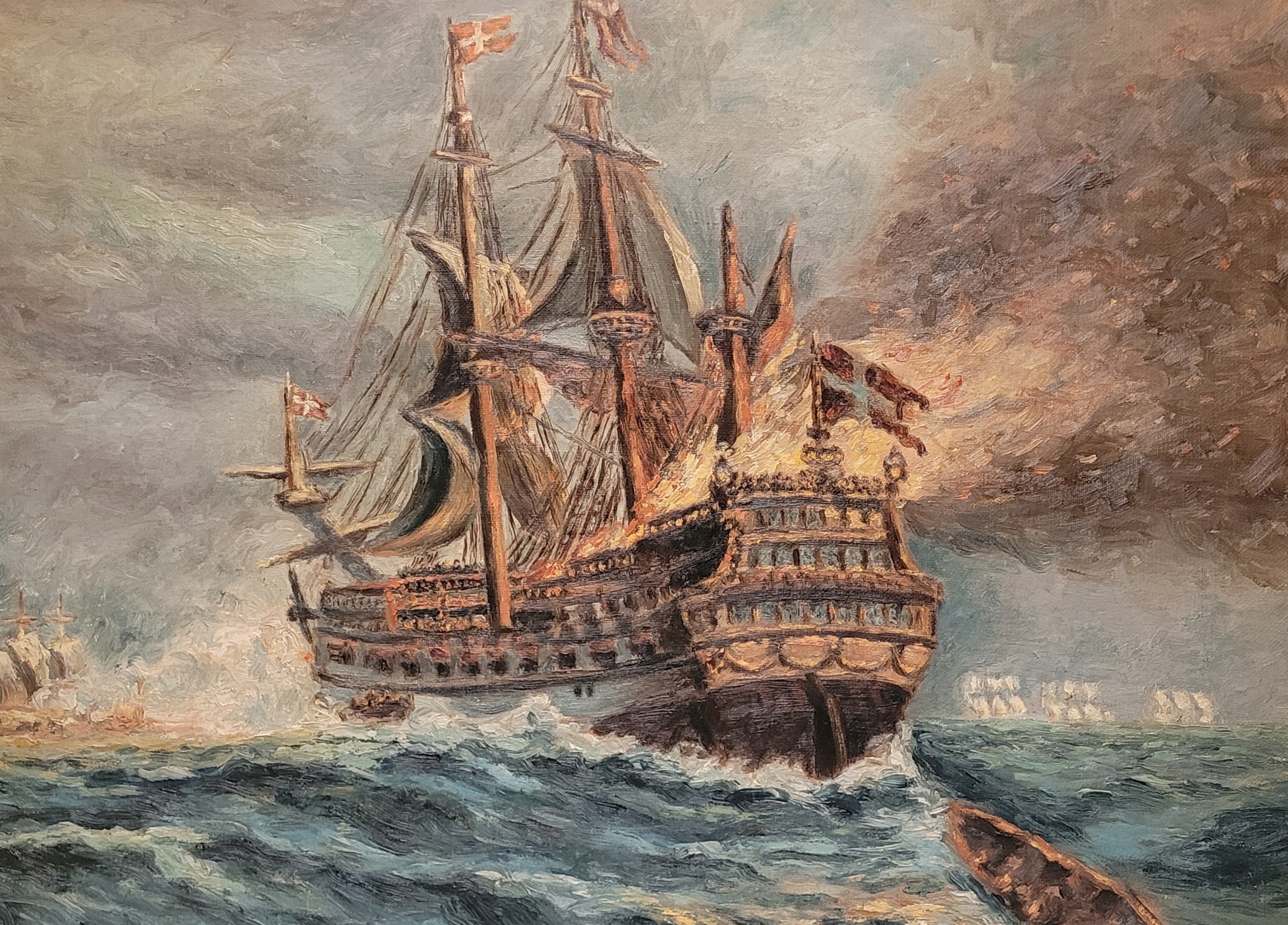 «Датский галеон», старая, подписанная нефтяная картина.