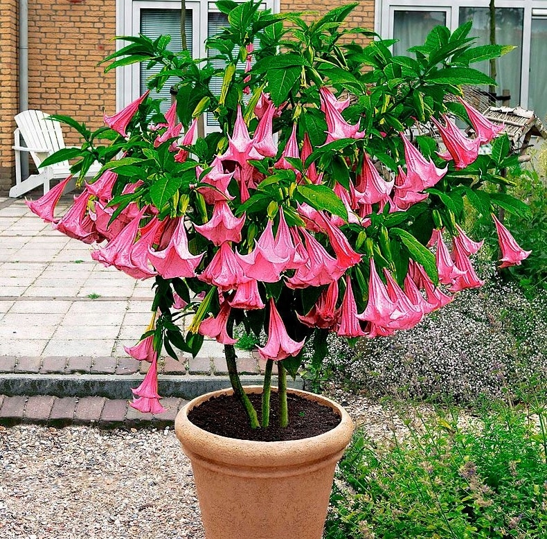 Дурман – многолетнее растение. Он может иметь форму небольшого дерева или кустарника и достигать до 4 м в высоту. С возрастом более старые, утолщенные побеги одревесневают и быстро разрастаются, создавая раскидистую и разветвленную крону. Крупные, длиной до 30 см, яйцевидные листья, часто густо опушенные, расположены вдоль стебля очередно. В июне появляются крупные красные свисающие цветки в форме трубы, у некоторых сортов они могут достигать 50 см в длину. Величайшим украшением этого растения являются его трубчатые, очень ароматные и очень крупные цветы, поэтому его называют ангельской трубой. Эффектные растения, особенно в период цветения, производят потрясающее впечатление. Размещенные в саду, на террасе или балконе, они, несомненно, привлекут внимание. В упаковке 5 семян.