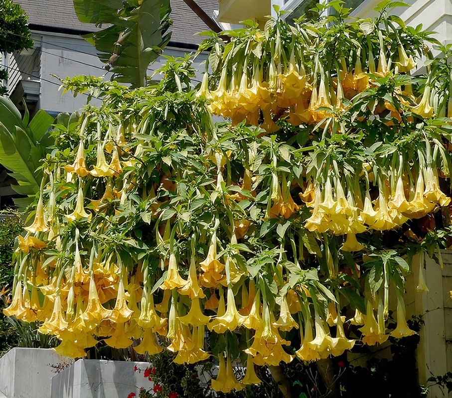 Дурман – многолетнее растение. Он может иметь форму небольшого дерева или кустарника и достигать до 4 м в высоту. С возрастом более старые, утолщенные побеги одревесневают и быстро разрастаются, создавая раскидистую и разветвленную крону. Большой, о