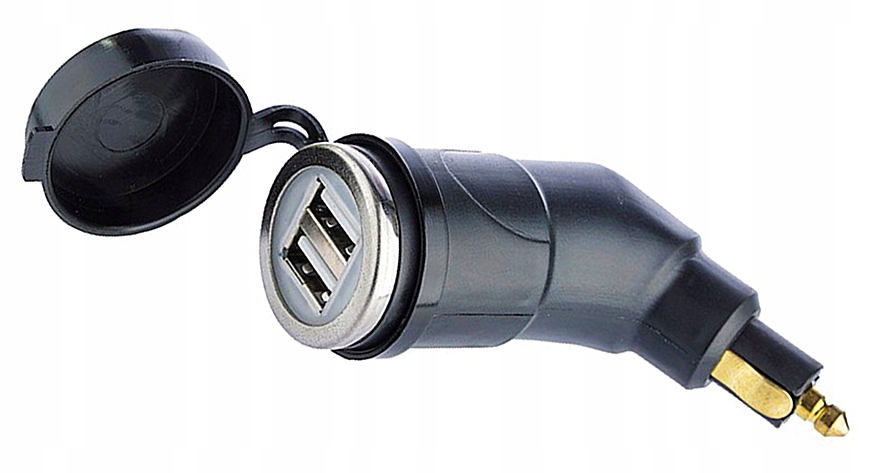 Зарядное устройство идеально подходит для всех транспортных средств, оснащенных зажигалкой DIN с питанием DC 12/24 В - в грузовиках, фургонах доставки, туристах, мотоциклами. Он был разработан для действий в неблагоприятных погодных условиях - в случае дождя, просто закройте резиновую пробку. Он имеет два USB -порта с общей мощностью 3,3А.