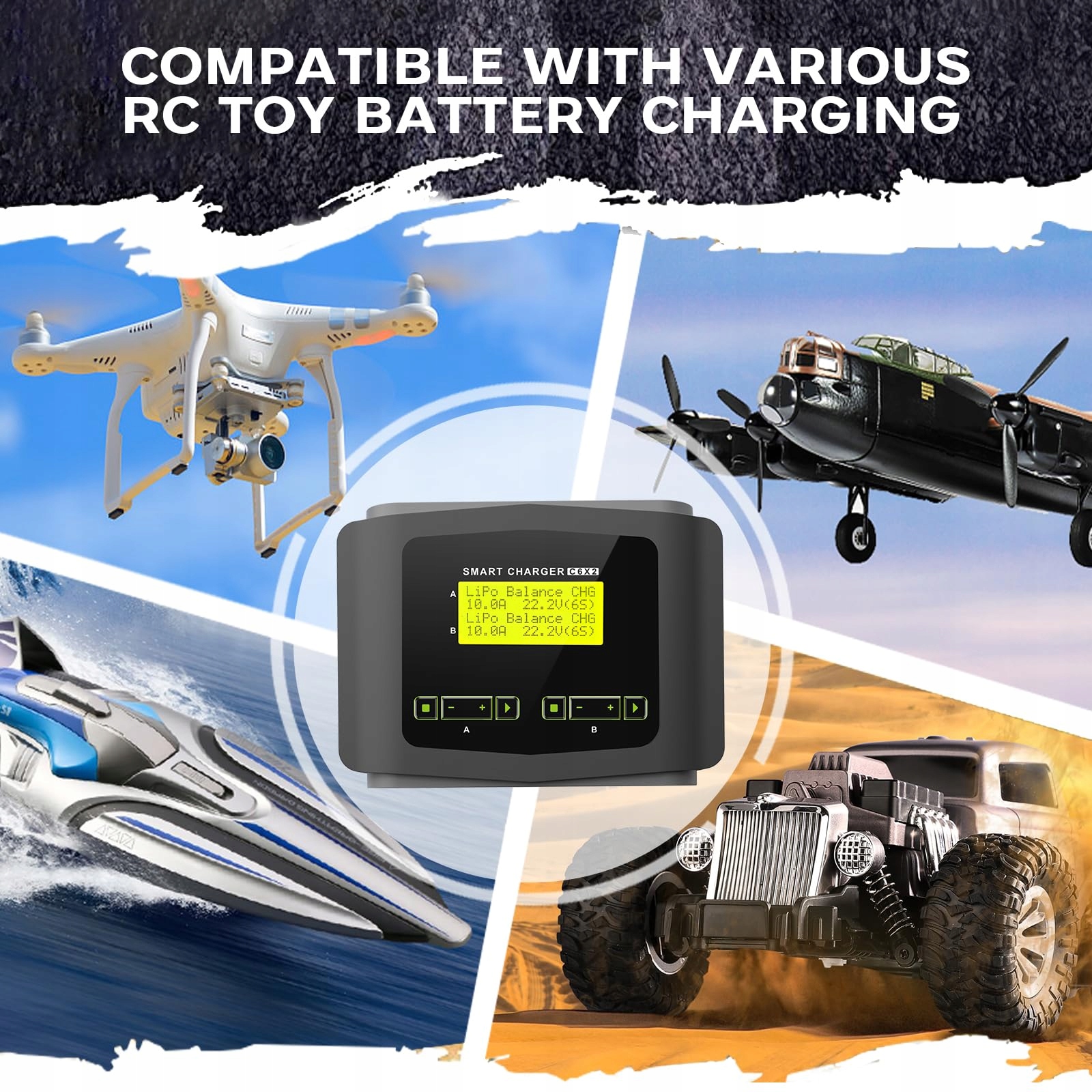 【Зарядное устройство Lipo с двойным каналом】 Поддерживает вход AC и DC, вход AC 100-240 V, вход DC 11-18 V. Возможная мощность зарядки при входе переменного тока: CH1 + CH2 = 150 Вт. На входе постоянного тока мощность зарядки каждого порта может достигать 120 Вт. Мощность разгрузки 10 Вт, ток зарядки 0,1-10 A * 2, ток разгрузки 0,1-2 A * 2.