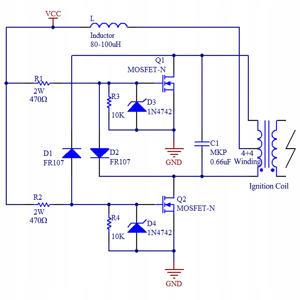 1. Схема обратного хода используется для управления катушкой зажигания. Переключатель нулевого напряжения также известен как «цепь ZVS»