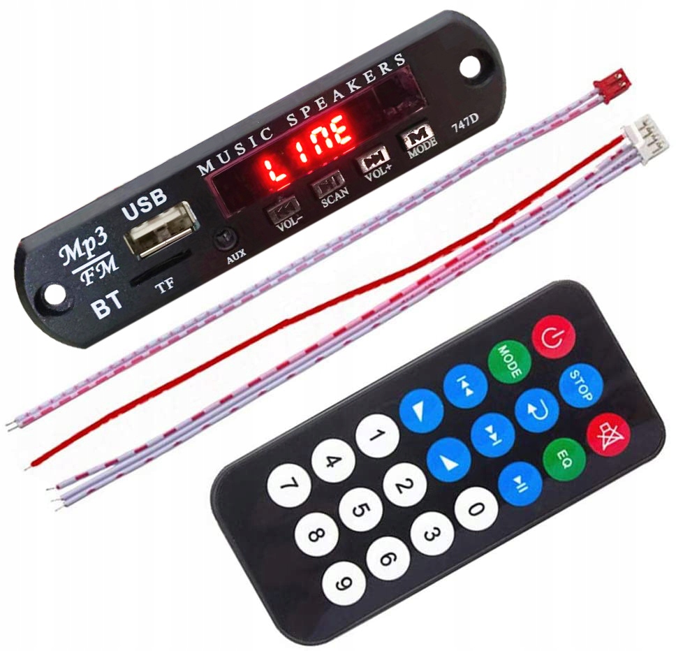 С модулем аудиоприемника, когда мобильный телефон и соединение соответствуют модулю, файлы MP3 или неразрушающие файлы APE отправляются на модуль приемника для воспроизведения, что значительно помогает функционированию продукта и развлечениям. Этот продукт также похож на обычную плату декодера MP3, воспроизводит файлы MP3 с U-диска или TF-карты, а также осуществляет радиопередачу. (Этот продукт без функции вызова, без усилителя мощности, его можно подключить только к внешнему усилителю)