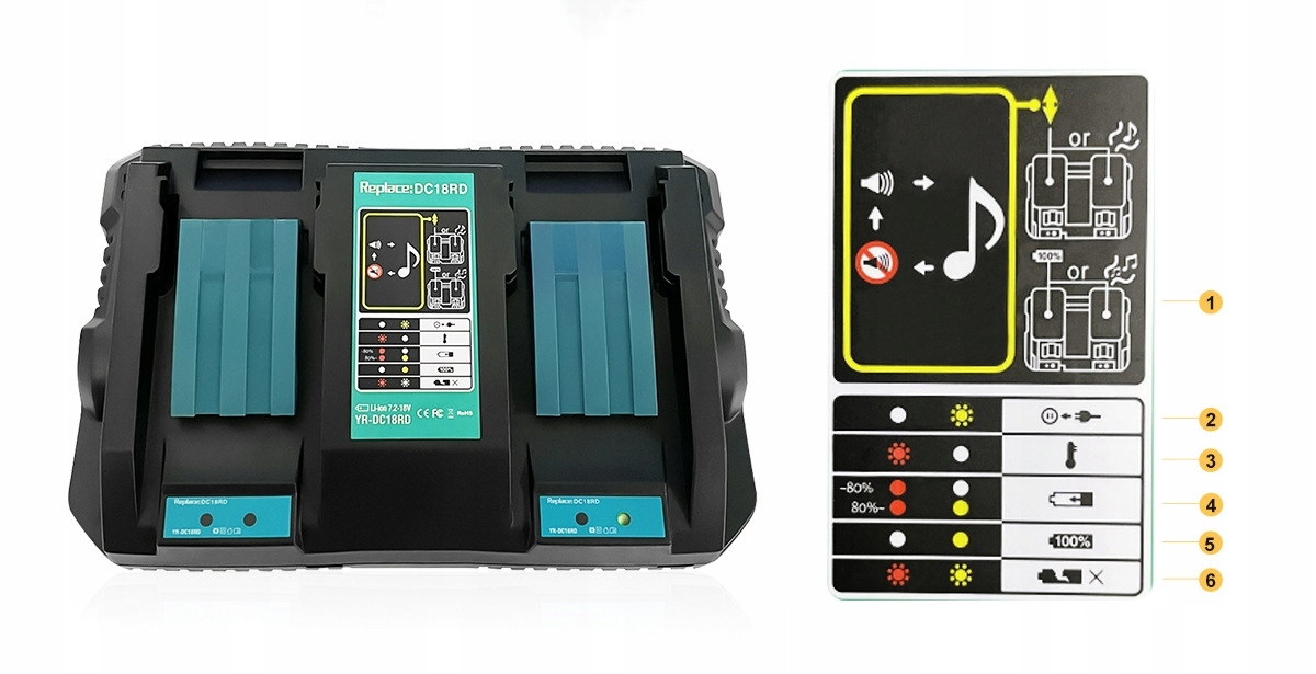 Модель этого зарядного устройства-dc18rd , она также заменяет зарядное устройство DC18RD DC18RC DC18SF, которое подходит для серии Makita 14.4 V или 18 V Li-Ion Lxt Makita. DC18RD Зарядное устройство оснащено светодиодным индикатором, схемой безопасности и низким выходом