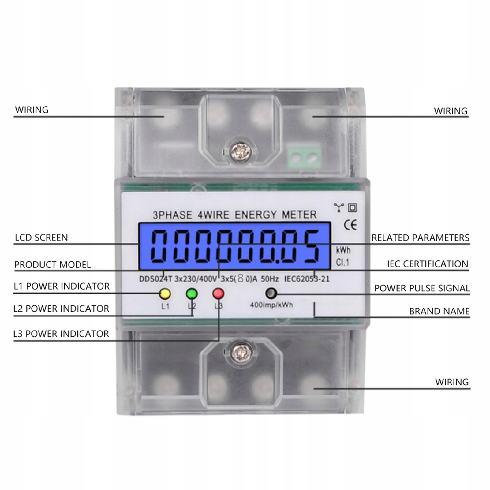 DDS024T 3-фазный 4P электронный счетчик энергии 380 В цифровой 9U