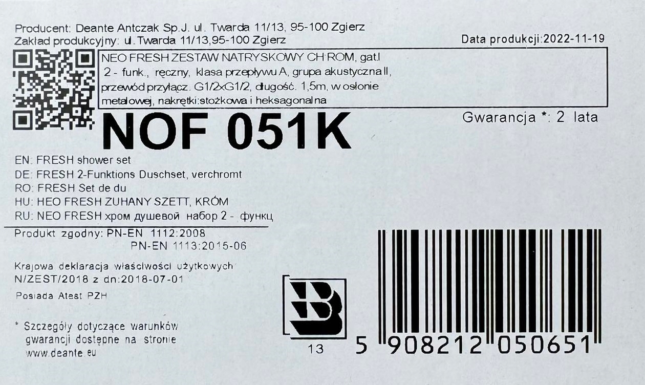 Двухфункциональный душевой набор DEANTE NEO Fresh