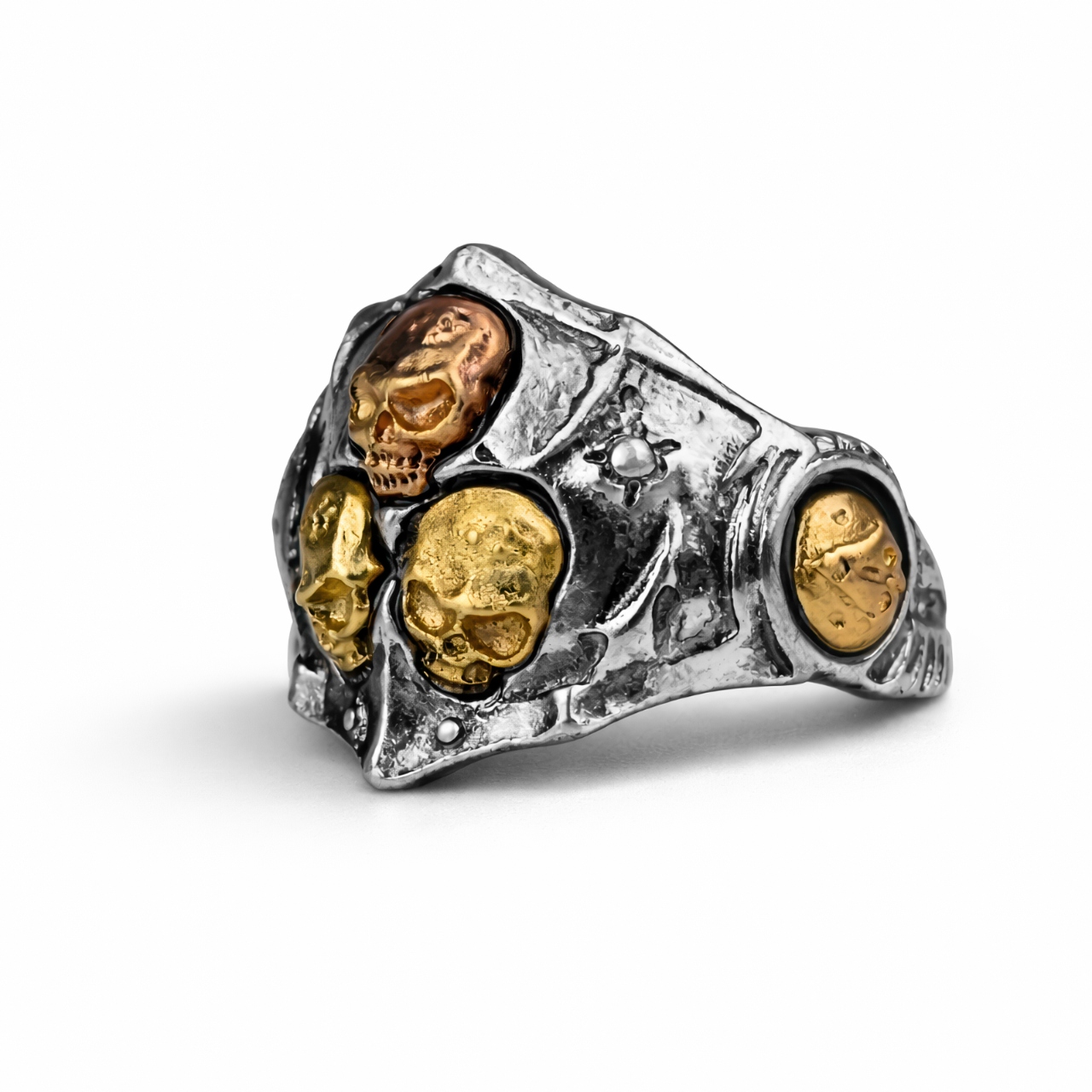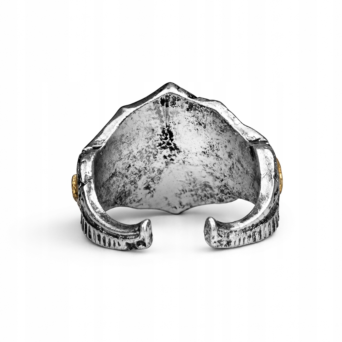 В дымных, отравленных войной зонах Warhammer 40k Гвардия Смерти наступает с терпеливой и безжалостной решимостью — и это кольцо Гвардии Смерти позволяет вам носить эту темную преданность с гордостью. Это массивное металлическое кольцо в контрастном, «потертом в боях» стиле: яркий серебристый блеск нарушен затемненными углублениями и выразительными золотыми акцентами. На лицевой стороне доминируют три черепа с выпуклым рельефом: два цвета насыщенного золота внизу и один вверху более теплого золотисто-коричневого оттенка, заключенные в глубокие затененные рамки, которые прекрасно подчеркивают детали. По бокам видны круглые, «монетные» золотые вставки с профилированной гранью, а вокруг необработанная пористая фактура, мелкие «заклепки» и небольшой знак восьмиконечной звезды. Обручальное кольцо открыто сзади, поэтому его размер можно регулировать; торцы слегка загнуты, по бокам имеются бороздки, а салон выглядит грубо «кованым», что идеально вписывается в общую эстетику. Все это напоминает разъеденную трофеями атмосферу классических иллюстраций из кодексов — идеально подходит для игр, конвенции, косплея или на подставке рядом с чемоданом с армией. Добавьте его в свою коллекцию или подарите тому, кто чтит Нургла, и добавьте в свой стиль немного особенной и мрачной нотки.