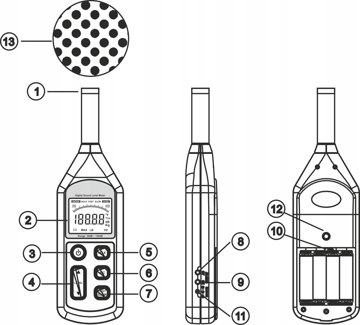 - Измерение уровня: 30 ~ 130 дБ, 35 ~ 130 дБ