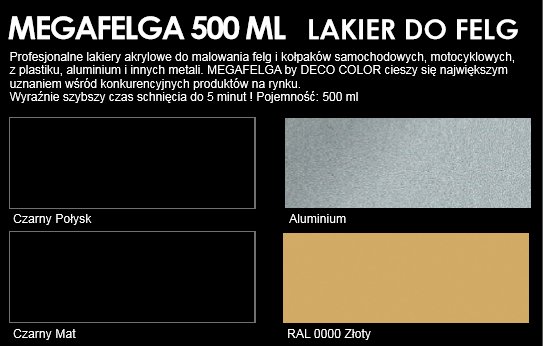 DECO COLOR Акриловий лак MEGAFELGA для чорних обідків 500 мл - 22543