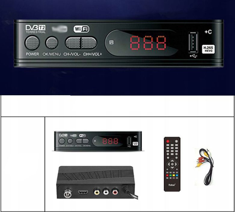 Аксессуары: декодер + AV-кабель + пульт дистанционного управления + руководство пользователя