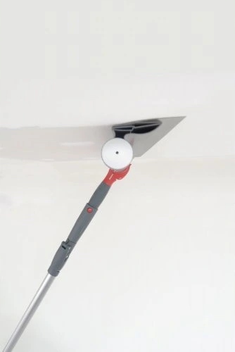 Благодаря дополнительной ручке шпаклевку можно соединить с выдвижным телескопическим удлинителем, имеющимся в комплекте, который идеально подходит для заполнения более высоких помещений. поверхности, например потолки.
