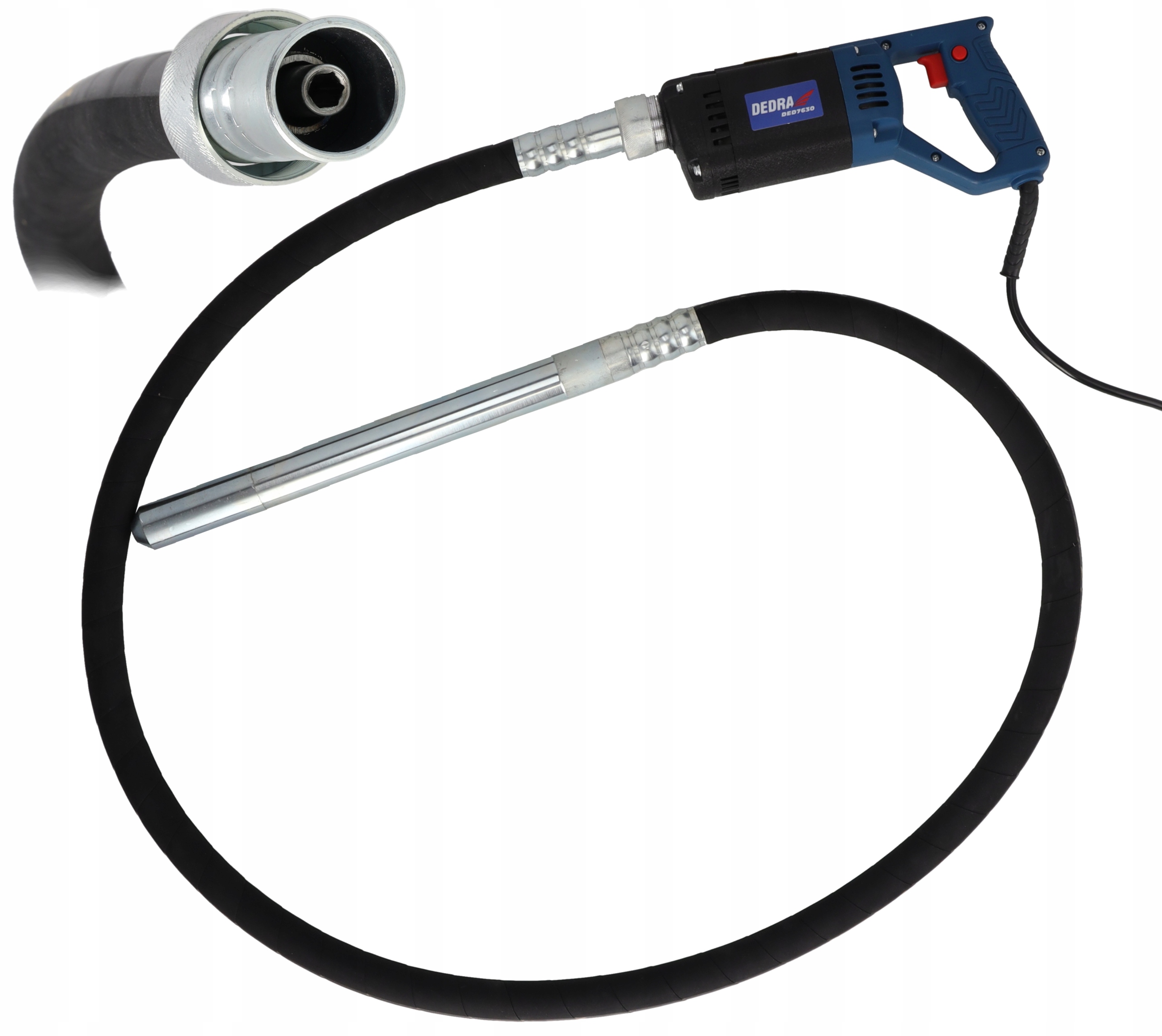Вибратор для бетона DEDRA с вибрационной кочергой, мощность 1200Вт, длина шланга с кочергой 2,5 метра.