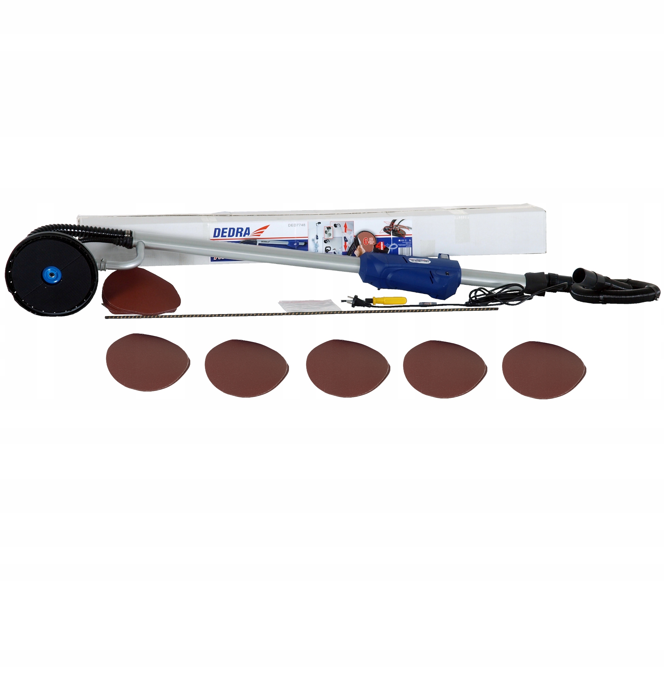 Новая, очень качественная шлифовальная машина для гипса с телескопической ручкой мощностью 710Вт от известной и авторитетной компании DEDRA. Это одно из самых мощных устройств, доступных на нашем рынке. Шлифмашина оснащена уникальной подвижной головкой, позволяющей направлять диск на обрабатываемую поверхность. Это позволяет оператору станка шлифовать нижнюю, среднюю и верхнюю часть стены и потолка, не меняя положения. Удобный и эргономичный дизайн позволяет быстро и легко шлифовать поверхность.