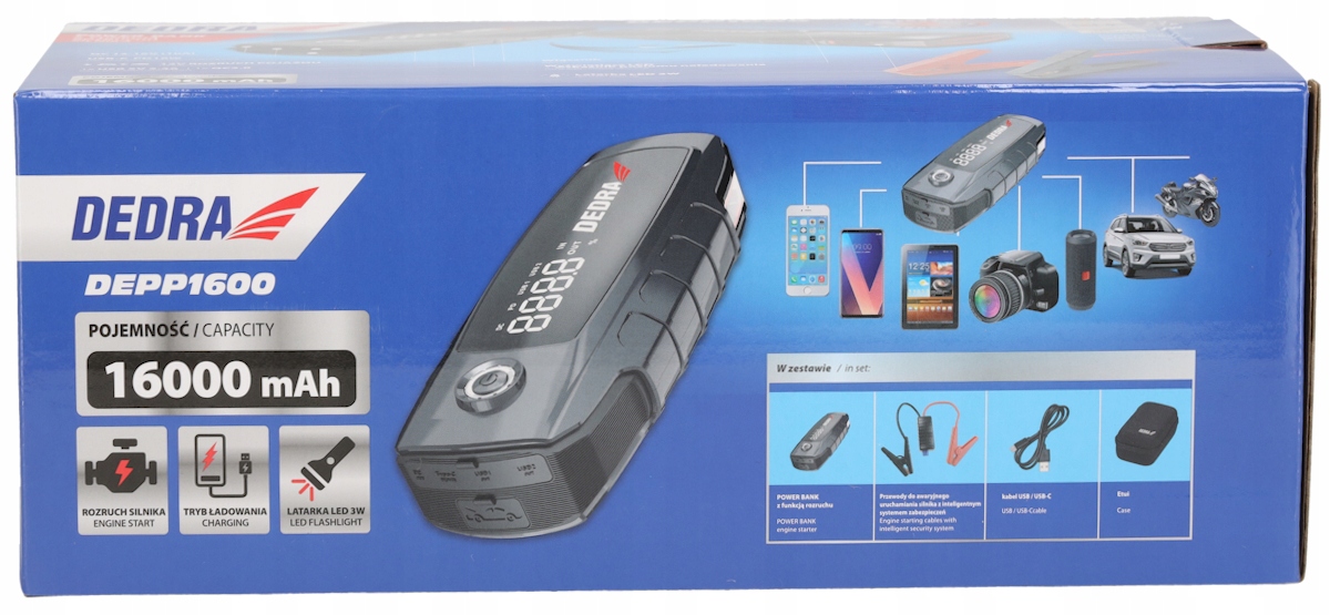 DEDRA Jump Starter 16000 мАч USB-C светодиодный усилитель 59,2 Втч