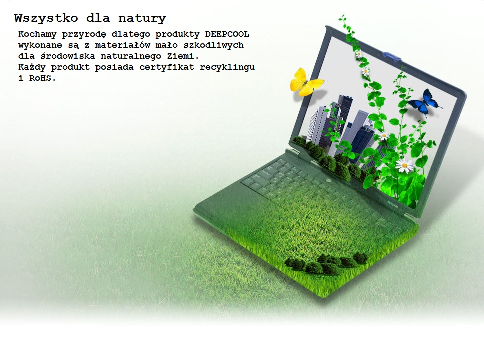 Deepcool прилагает все усилия для защиты Земли и климата, сертифицирована по стандарту ISO14000 как система экологического менеджмента и приносит зеленую революцию в области защиты окружающей среды, энергосбережения и снижения загрязнения. Вся продукция соответствует директивам RoHS и WEEE.