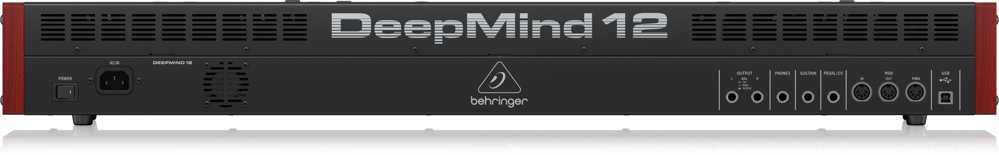 BEHRINGER DEEPMIND 12 — настоящий аналоговый 12-голосный полифонический синтезатор с 4-элементным процессором эффектов, 2 OSC и LFO на звук, 3 генераторами огибающей ADSR, 8-канальной матрицей модуляции, 32-шаговый секвенсор управления с возможностью дистанционного управления через планшет или встроенный Wi-Fi.