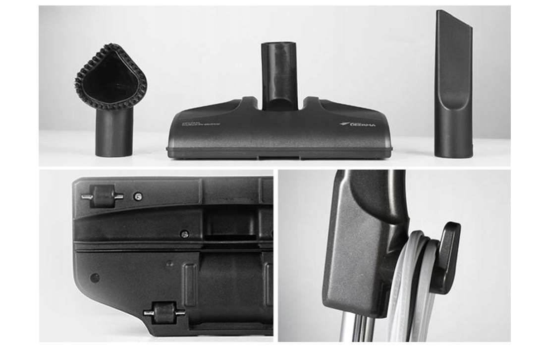 В упаковке целых 3 вида кистей. Щетка для пола идеально подходит практически для любой поверхности. Эффективно очищает панели, плитку и даже ковры. Управлять им чрезвычайно просто и удобно. Он плавно скользит по полу, а благодаря его толщине всего 5 см и повороту на 90° с ним можно добраться до любого уголка и закоулка. Плоская щетка идеально подходит для уборки пылесосом углублений в мебели или клавиатуре, а треугольная щетка идеально подходит для штор, простыней и других материалов, удаляя с них пыль, волосы и мех.