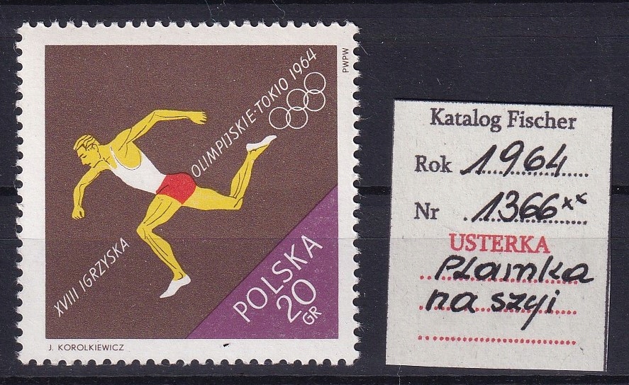 Дефект на марке Fi 1366, 1964 год.
