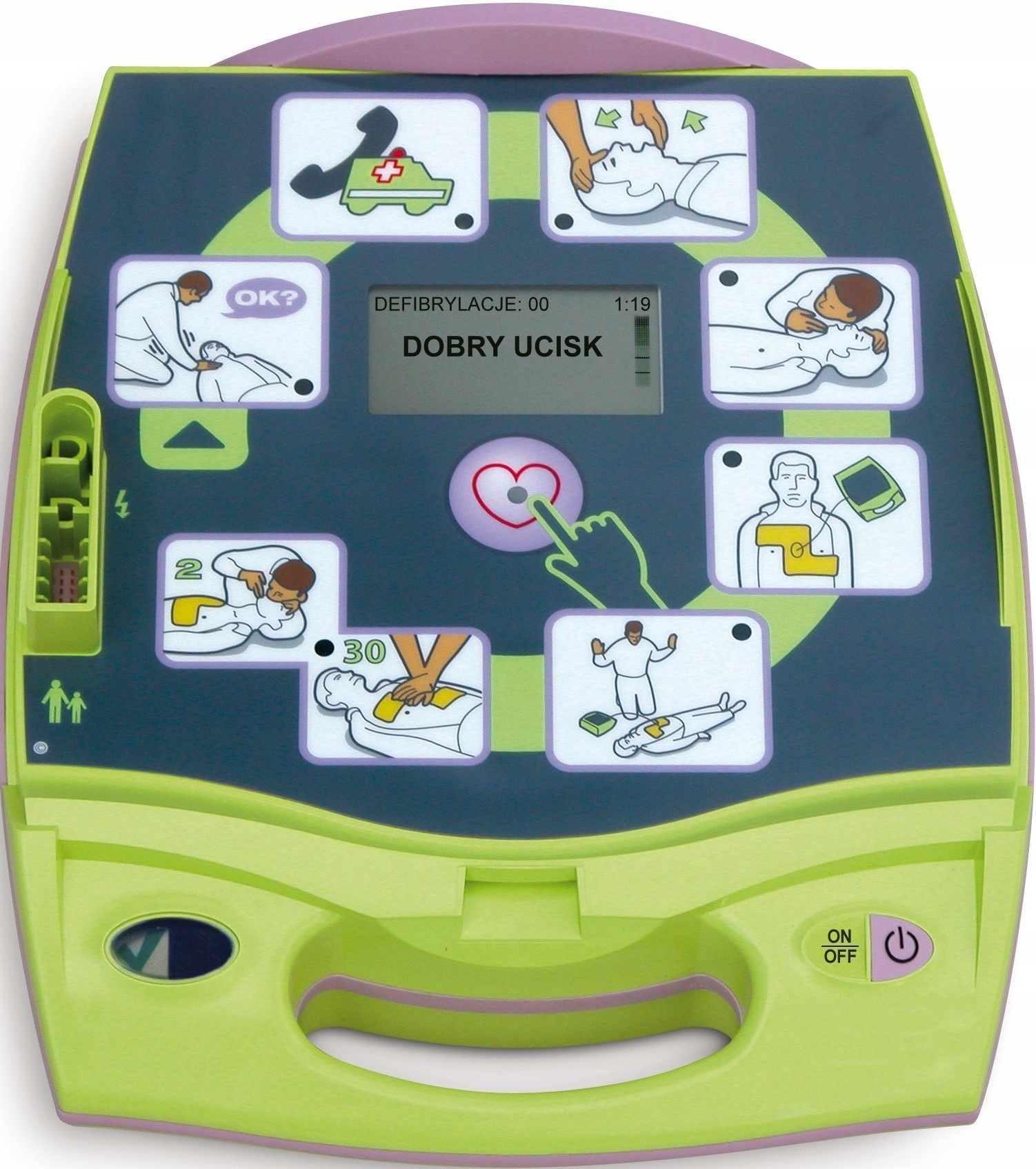 - Функция RealCPRhelp — проверка правильности непрямых массажей сердца и немедленная обратная связь в виде голосовых сообщений и визуализации на дисплее.