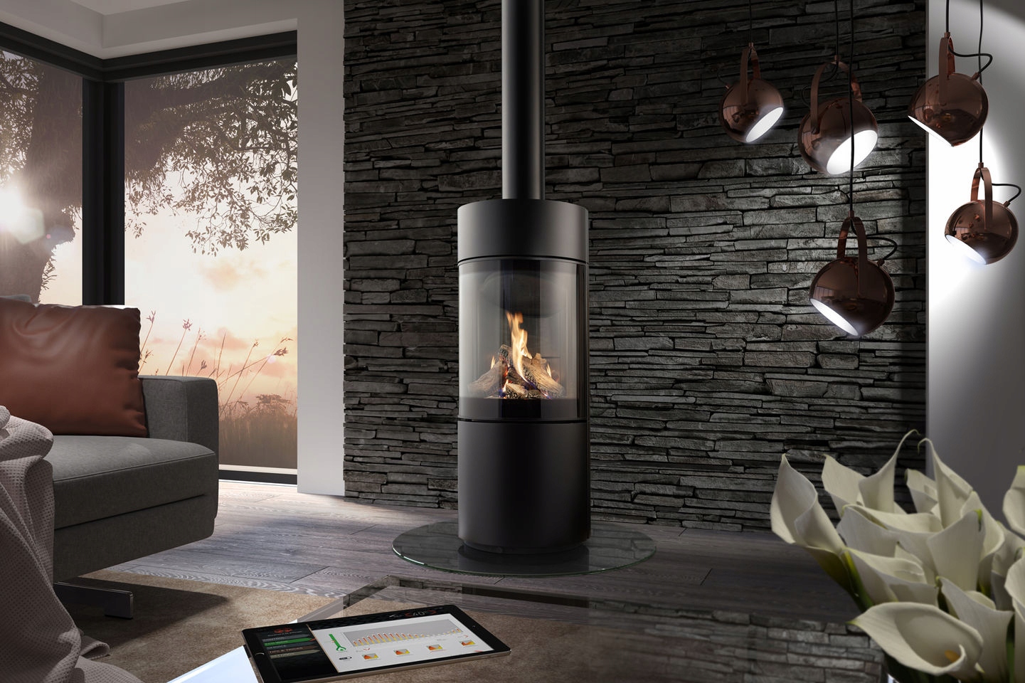 Дефлектор выхлопных газов, называемый также дымовой полкой, размещается в верхней части каминной топки. В камере, созданной над дефлектором, происходит процесс сжигания не сгоревших ранее частиц топлива. Полученное таким образом дополнительное тепло передается воздуху, а охлажденные и менее загрязненные выхлопные газы удаляются через дымоход.