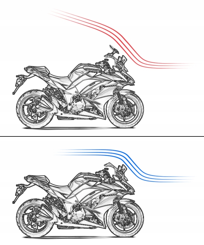 Дефлектор подходит для большинства мотоциклов, оснащенных лобовым стеклом. Его задача — перенаправить поток ветра на шлем для повышения комфорта езды. Используется, когда нынешнее лобовое стекло расположено слишком низко по отношению к росту водителя.