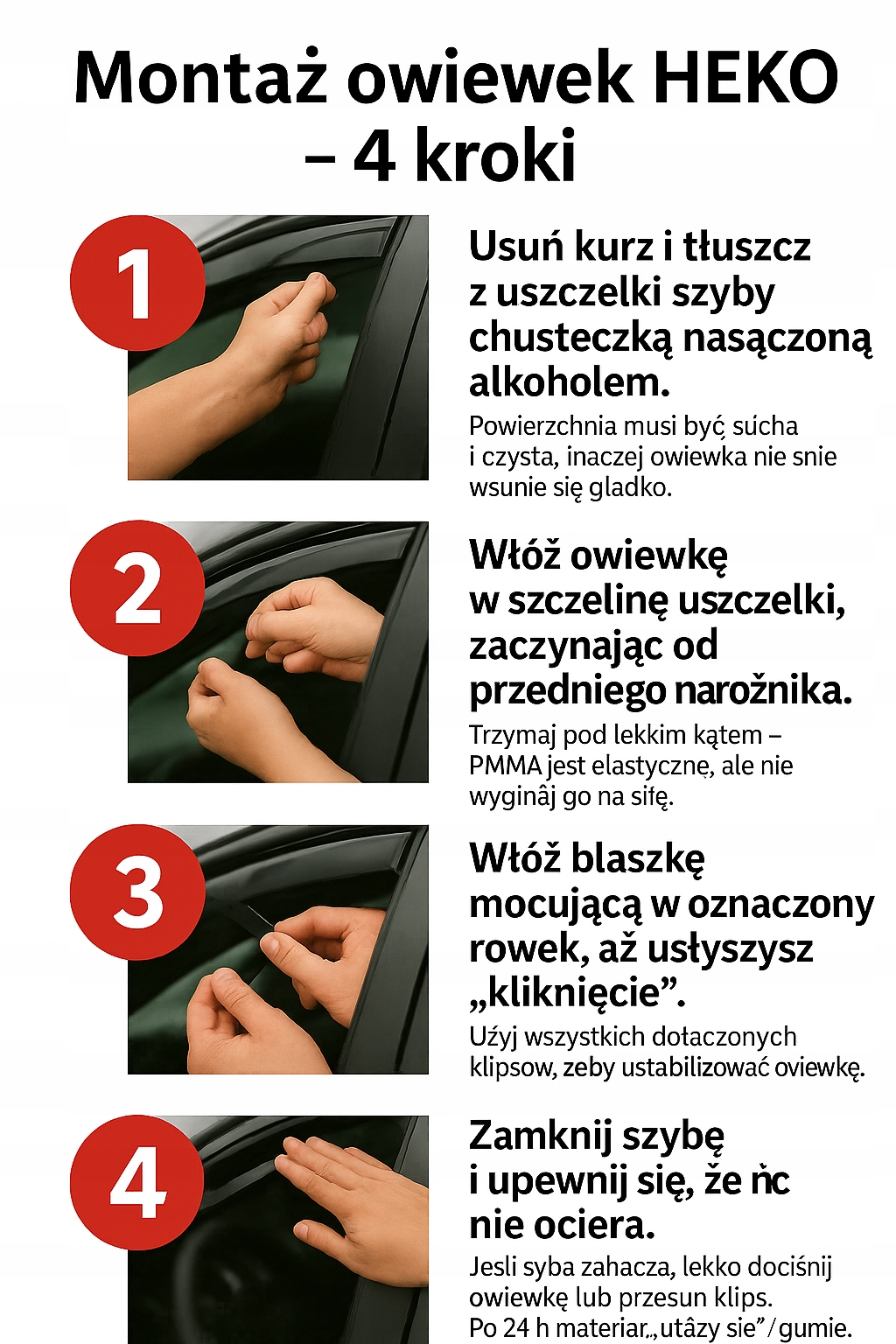 • Нужны ли инструменты для сборки? Нет. Лента 3М уже приклеена к обтекателю, а в коробке вы найдете набор клипс — все это можно установить вручную, без сверления и без отверток.