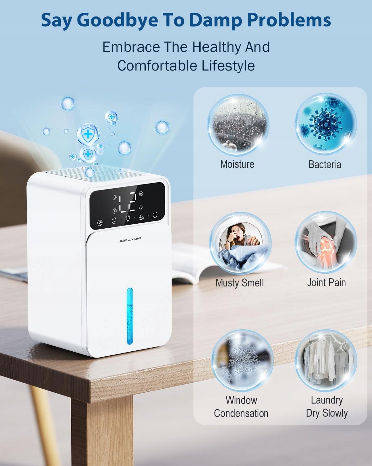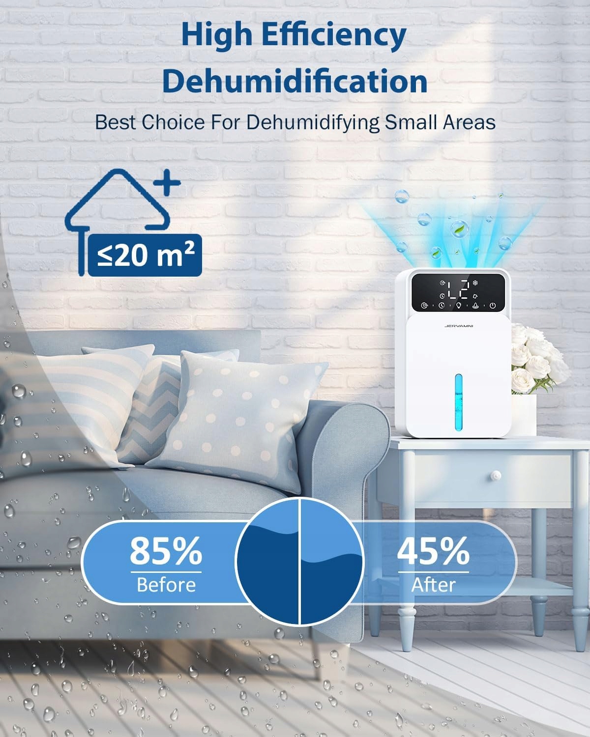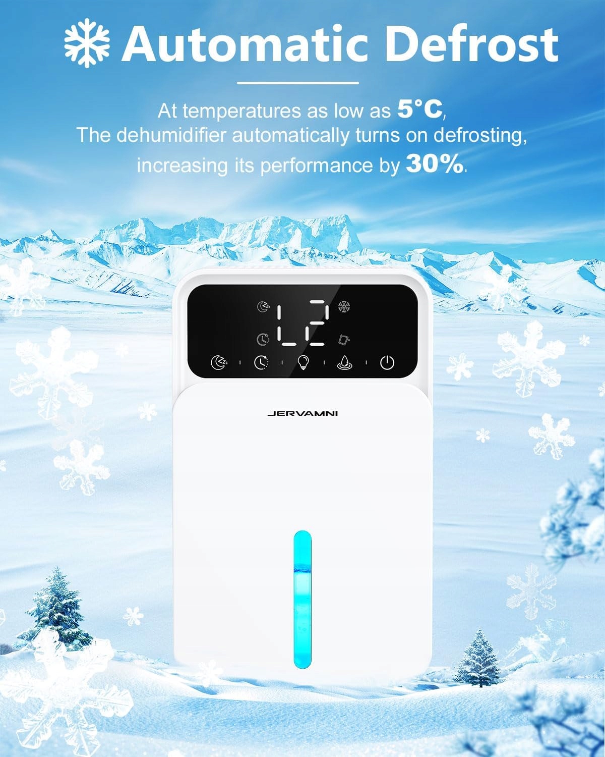 JERVAMNI Осушитель, осушитель для дома, портативный осушитель воздуха 1500 мл, контроль влажности и плесени, таймер на 12 часов, автоматическое отключение/размораживание