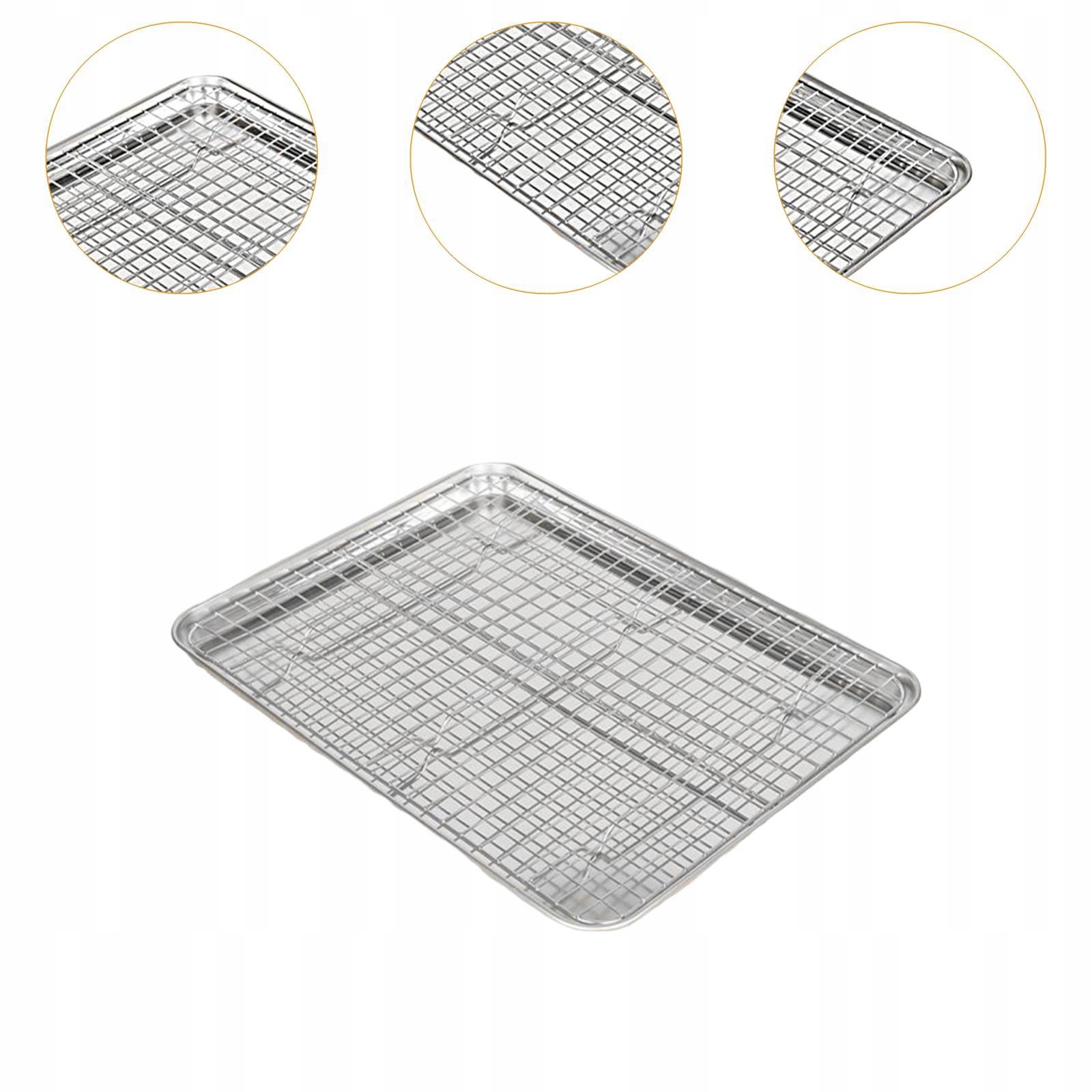 [Материал высшего качества]: этот противень с набором решеток, изготовленный из нержавеющей стали, рассчитан на долговечность и длительное использование, гарантируя, что он выдержит регулярные кухонные действия, не ржавея и не рвется.