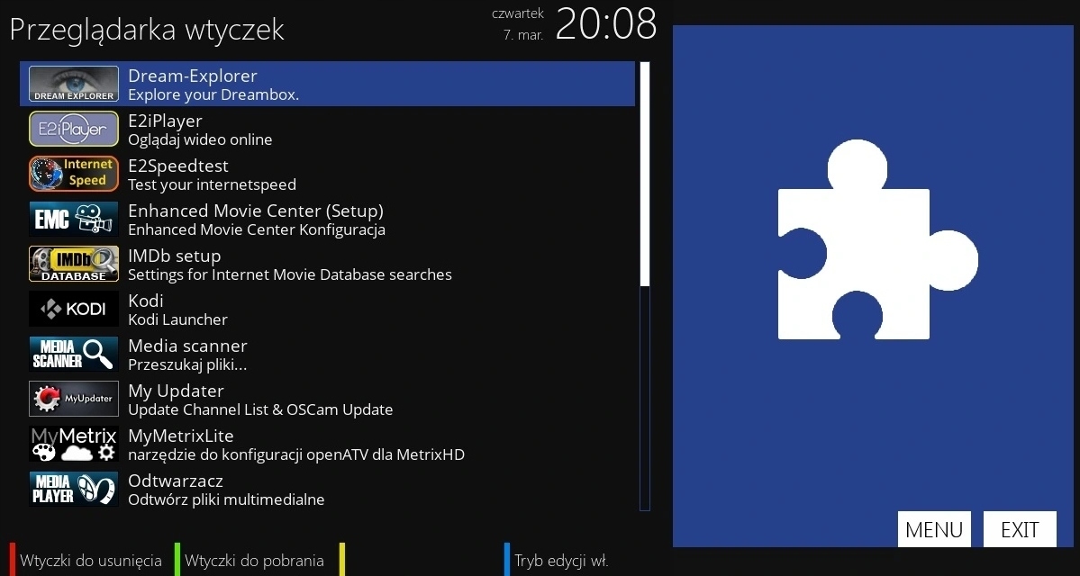Декодер с установленным программным обеспечением OpenATV 7.3 вместе со всеми необходимыми плагинами, такими как Oscam, CCCam, s4a Updater (MyUpdater), Polish списки каналов и e2iplayer.