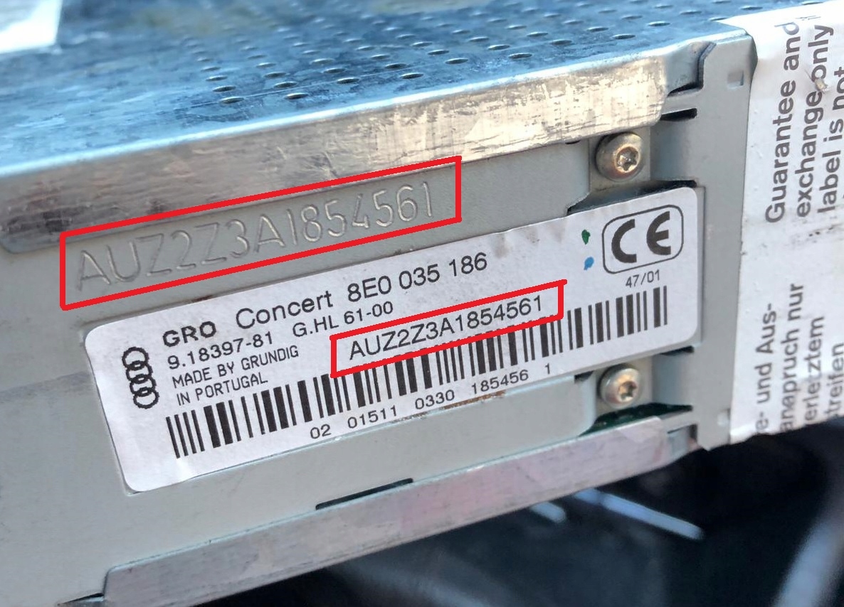 Чтобы получить код, прочтите серийный номер радиостанции, расположенный на корпусе радиостанции, начинающийся с букв AUZ, например AUZ2Z3E3027310, и отправьте его после покупки в сообщении продавцу. На некоторых моделях навигации серийный номер отображается на экране радио. (См. примеры фотографий серийных номеров в описании аукциона.)