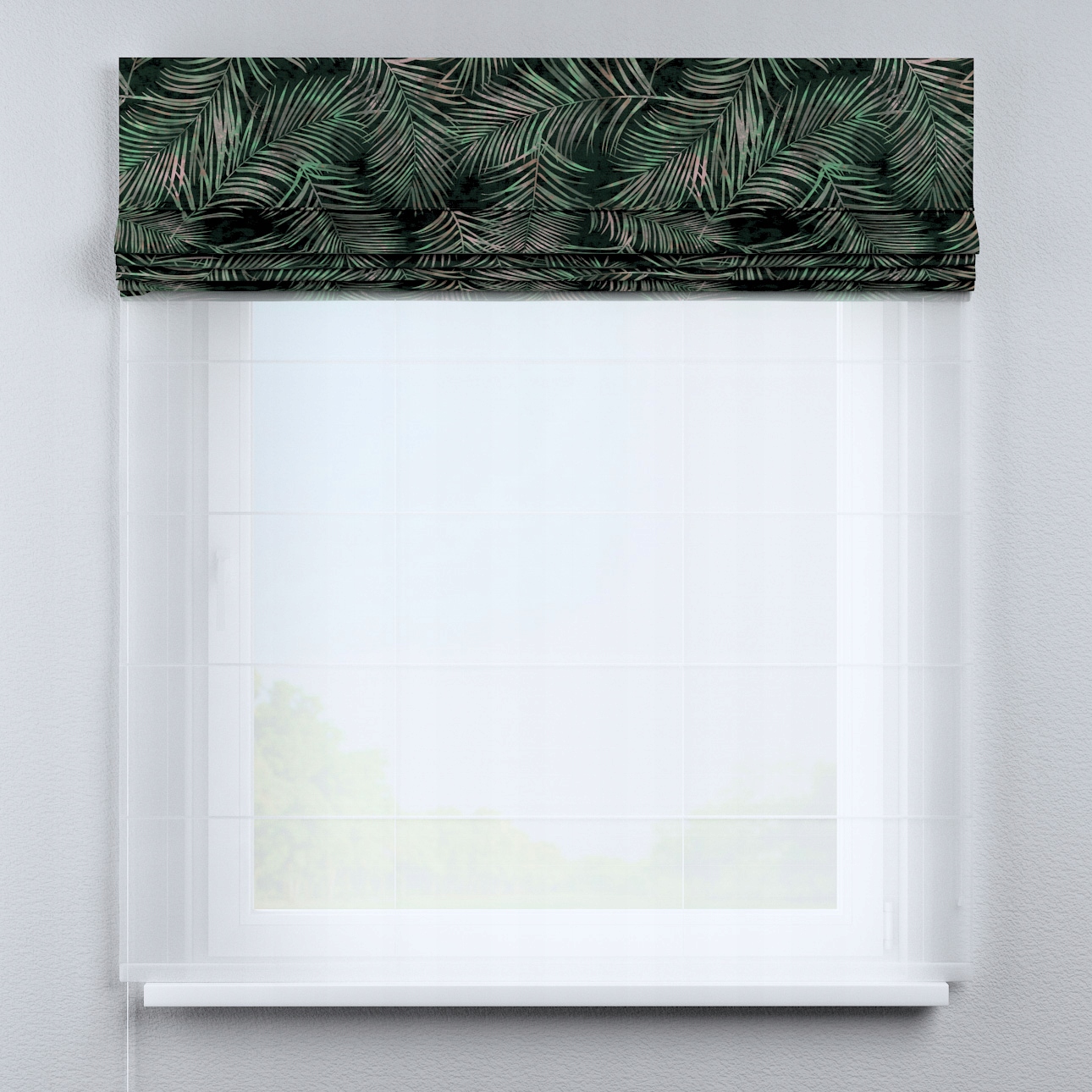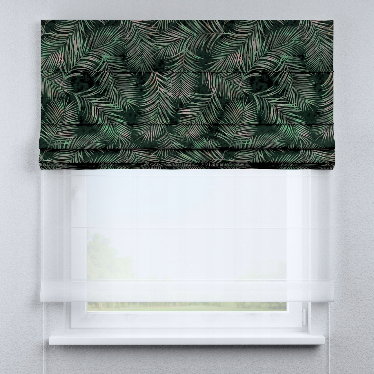 Римская штора Duo, ширина 130 х длина 170 см, зеленая с листьями, коллекция Velvet