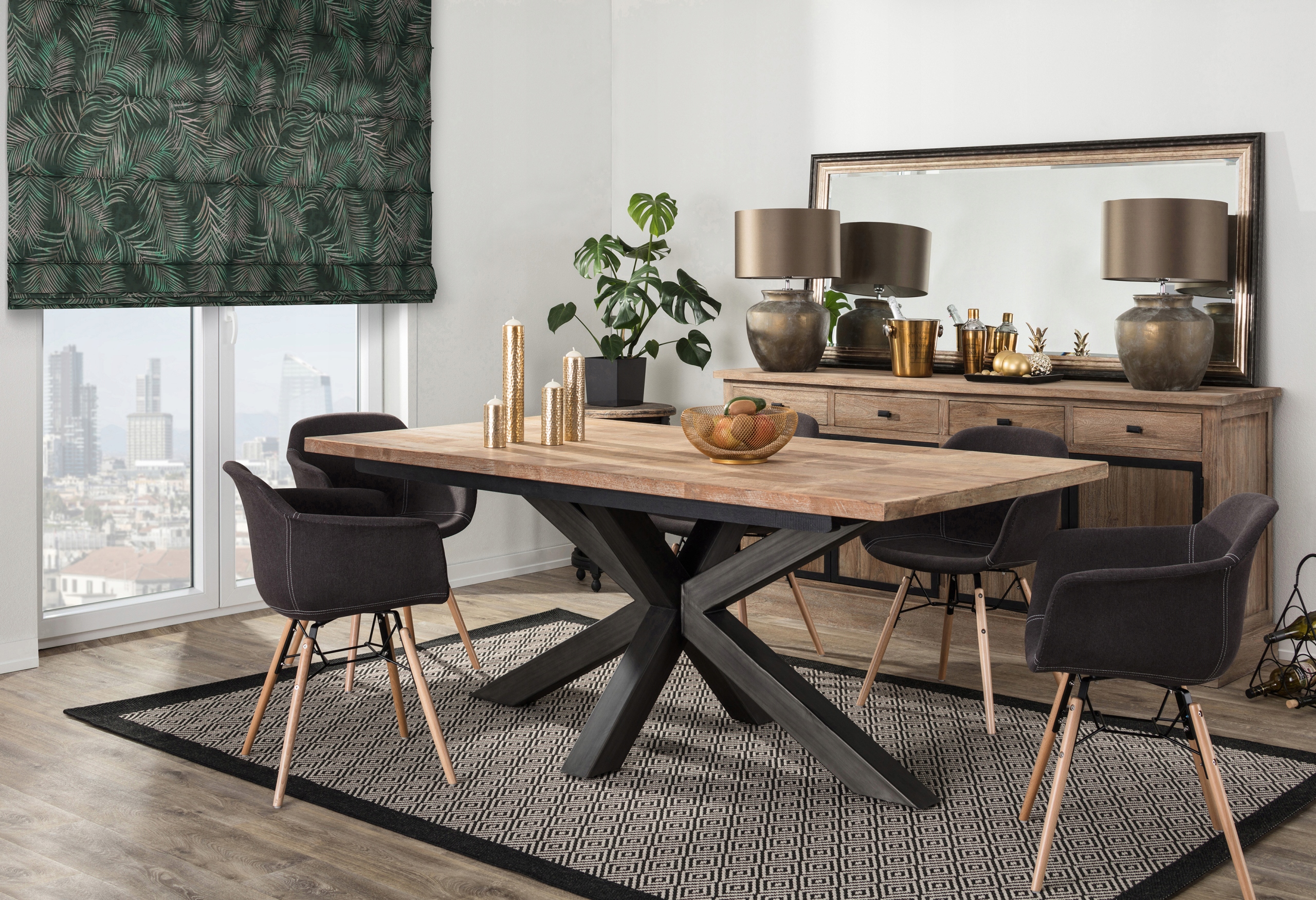 Двойная римская штора, совмещающая функцию шторы и портьеры.