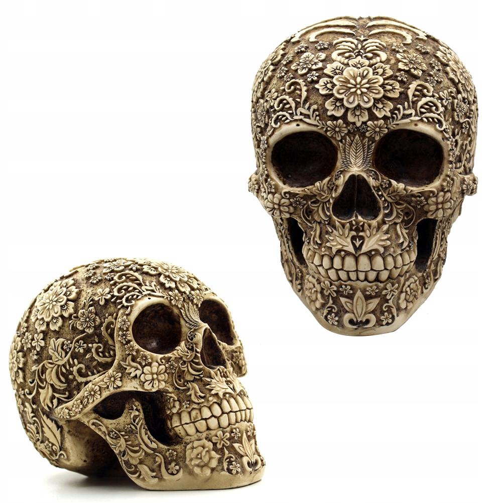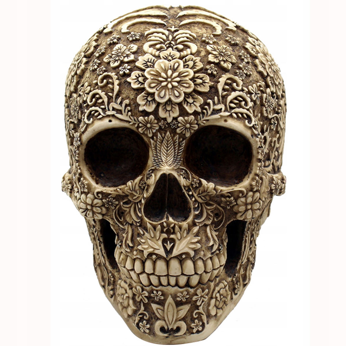 ✅1 * Череп из смолы Реалистичный человеческий череп Готический орнамент на Хэллоуин (Цветы)