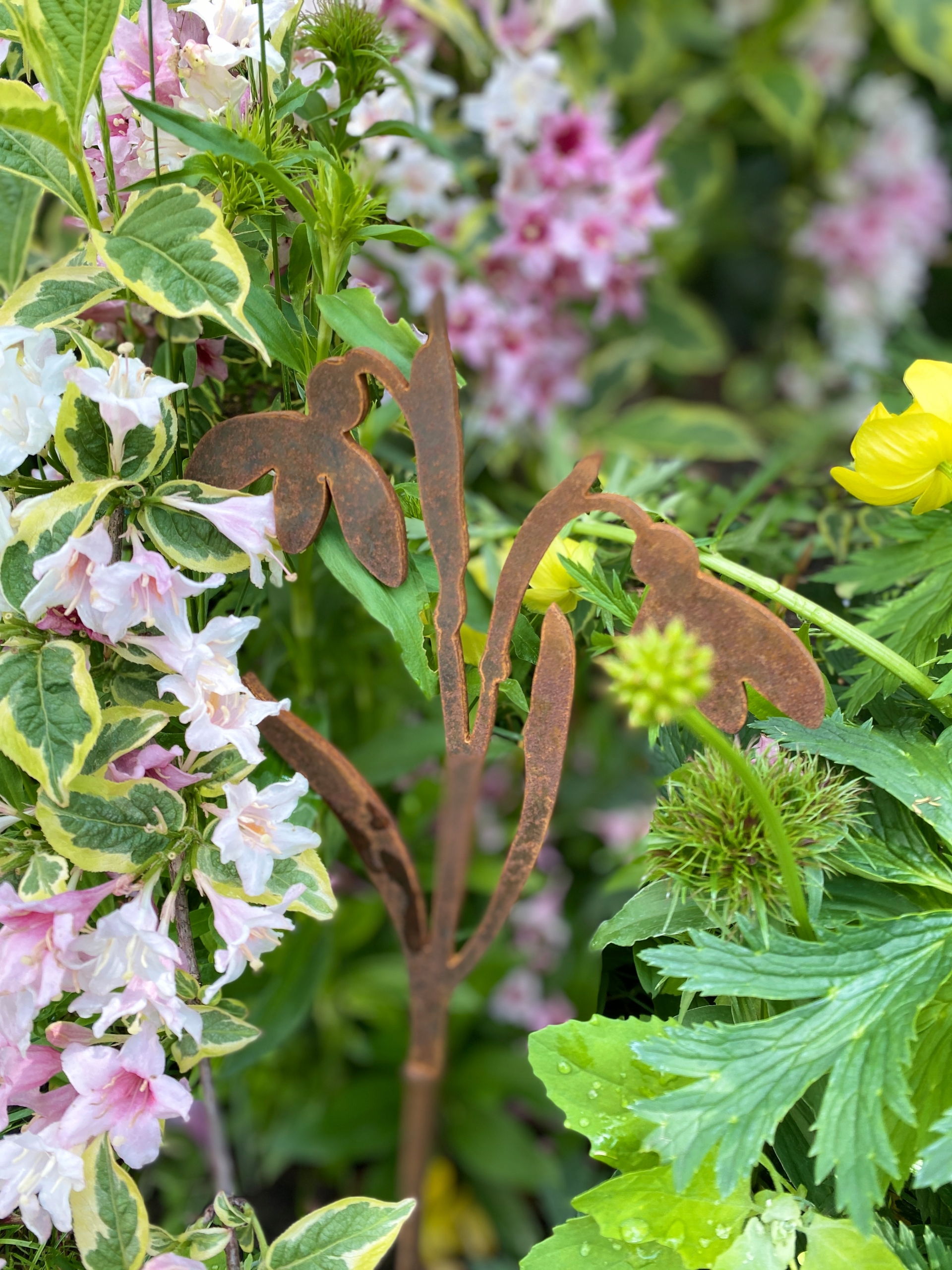 Подснежник, металлическое садовое украшение, также прекрасно вписывается в композиции в горшках и ящиках, на балконах и террасах.