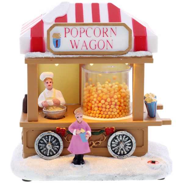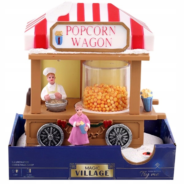 У фигурки горит свет, а вокруг вращается контейнер с попкорном.