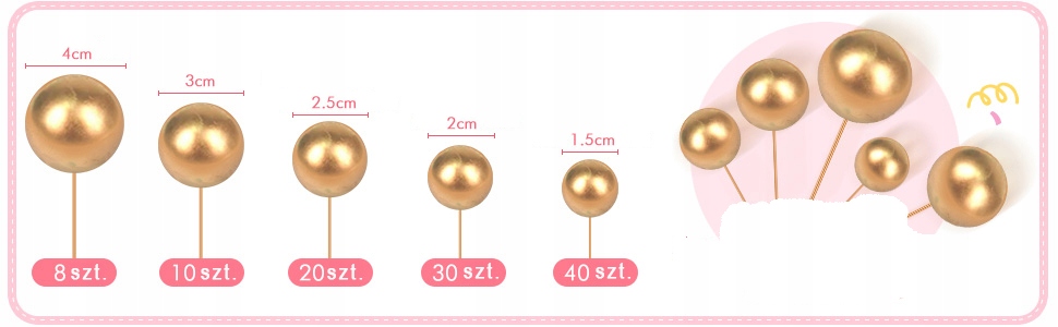 ТОПЕРЫ ДЛЯ ТОРТА ТОПЕРЫ ДЛЯ ТОРТА ЗОЛОТЫЕ ШАРИКИ НА ЩУКЕ 108 шт.