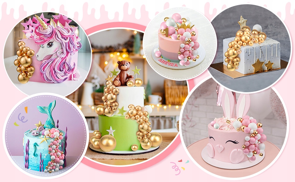 Широкое применение: Вставные шарики для торта можно использовать для праздничных тортов, кексов, закусок и других десертов, чтобы они выглядели более вкусно; Эти топперы для тортов станут идеальным украшением вечеринок по случаю дня рождения, детского праздника, помолвки, свадьбы, юбилея, Дня святого Валентина, Рождества и т. д.